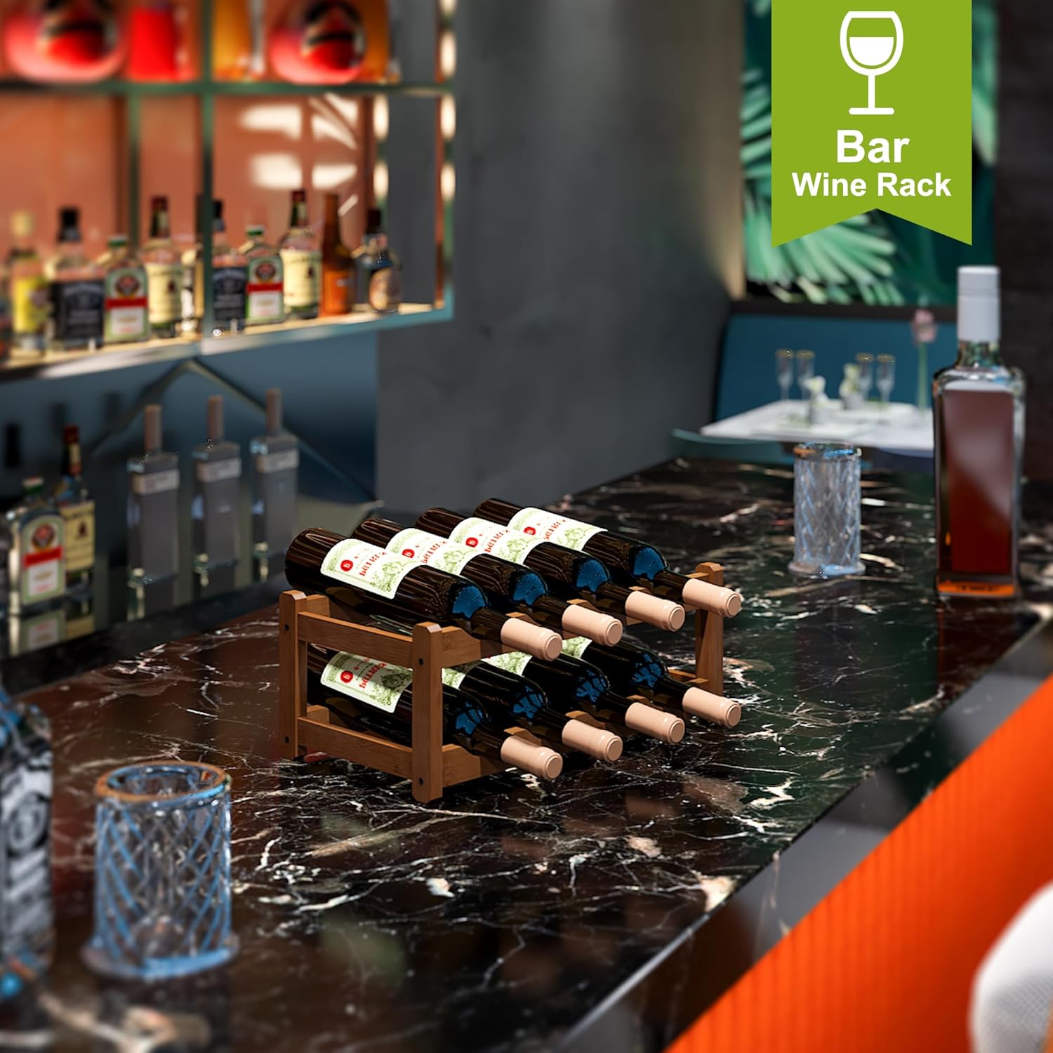 BMOSU Bamboo Wine Rack Wine Storage Cabinet Shelf 8 Bottle Wine Racks Countertop Sturdy for Kitchen Dining Room Pantry - 2 Tiers Wine Rack(Brown)