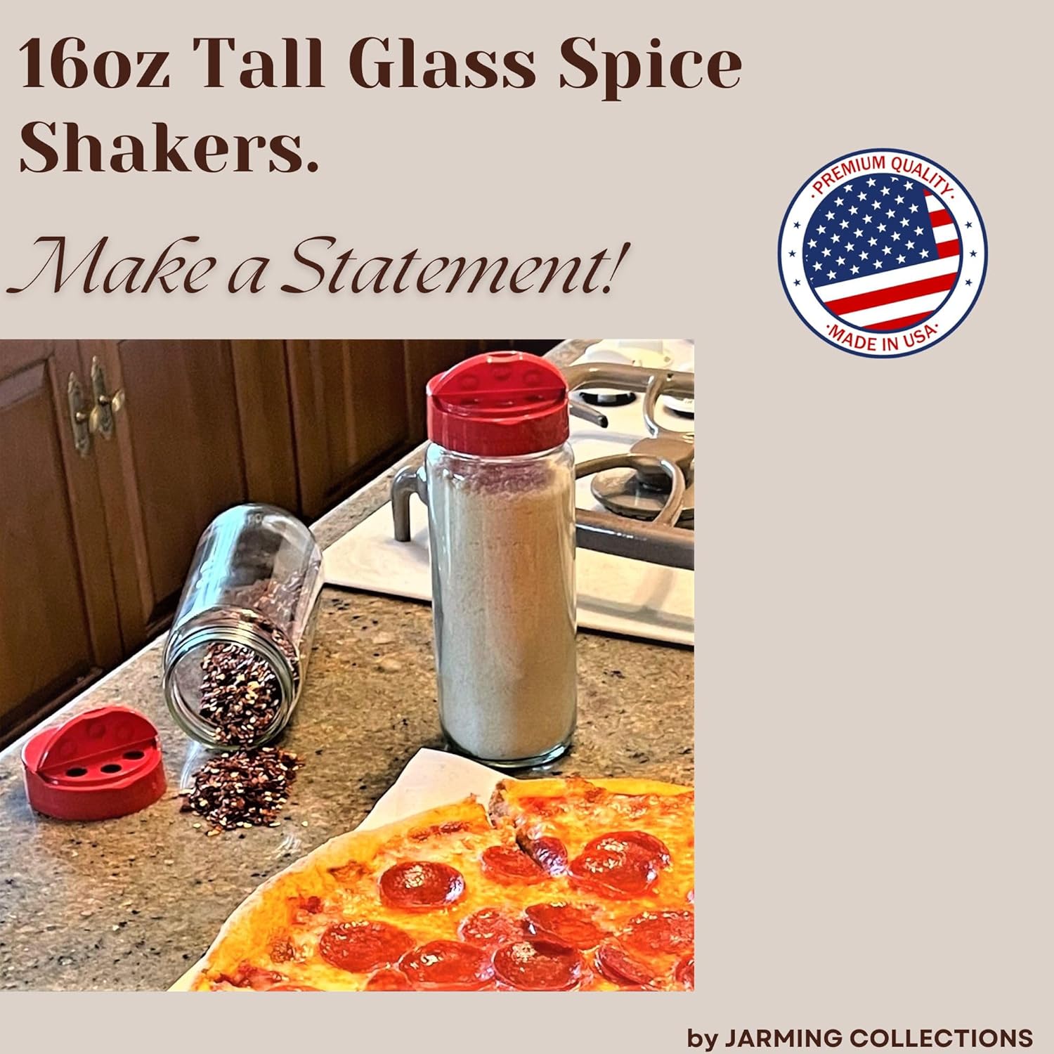 JARMING COLLECTIONS Glass Spice Jars with Shaker Lids - Spice Jars 16 oz for Food Storage, Spice Containers for Kitchen Organization, Organizing Bottles for Spices (Red - Set of 3)