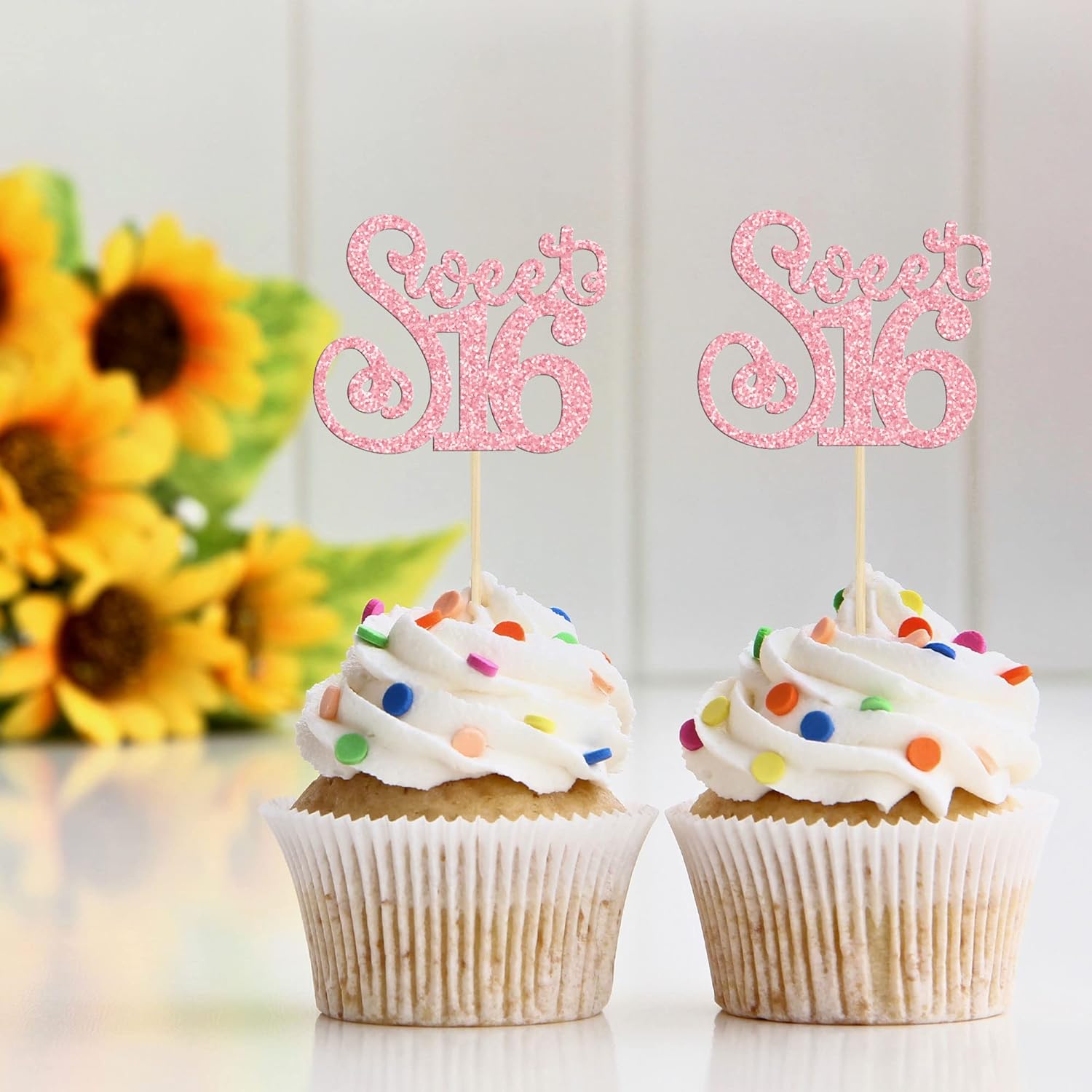 - ๐๐These Sweet 16 Cupcake Toppers are so cute and good for 16th birthday theme party, 16th anniversary theme party, 16 fabulous theme party cupcake decorations. They can make your cupcake more attractive and bring the fun to your party. You can also apply them for ice cream, fruits, cookies and other desserts.