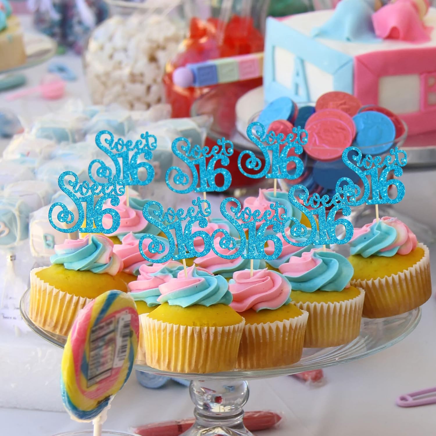 - ๐๐These Sweet 16 Cupcake Toppers are so cute and good for 16th birthday theme party, 16th anniversary theme party, 16 fabulous theme party cupcake decorations. They can make your cupcake more attractive and bring the fun to your party. You can also apply them for ice cream, fruits, cookies and other desserts.