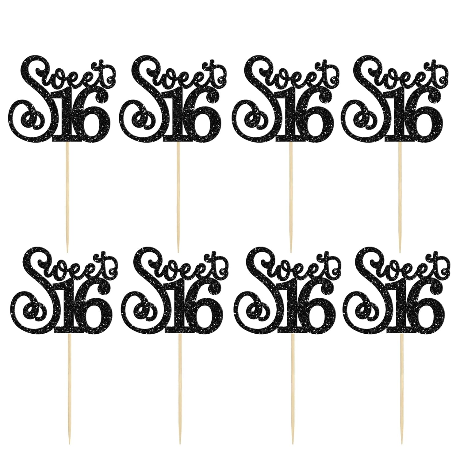 - ๐๐These Sweet 16 Cupcake Toppers are so cute and good for 16th birthday theme party, 16th anniversary theme party, 16 fabulous theme party cupcake decorations. They can make your cupcake more attractive and bring the fun to your party. You can also apply them for ice cream, fruits, cookies and other desserts.