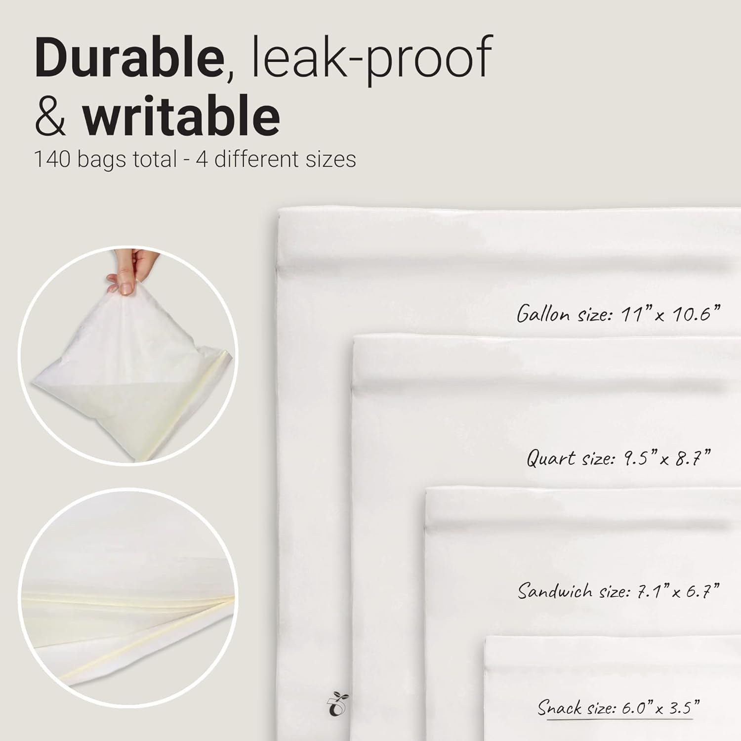 Vove Compostable Zip Bags 140-Pack | Multi-Size Biodegradable Food Storage Bags | PLA PBAT Eco-Friendly | Certified Sustainable Kitchen Storage | Zero Waste