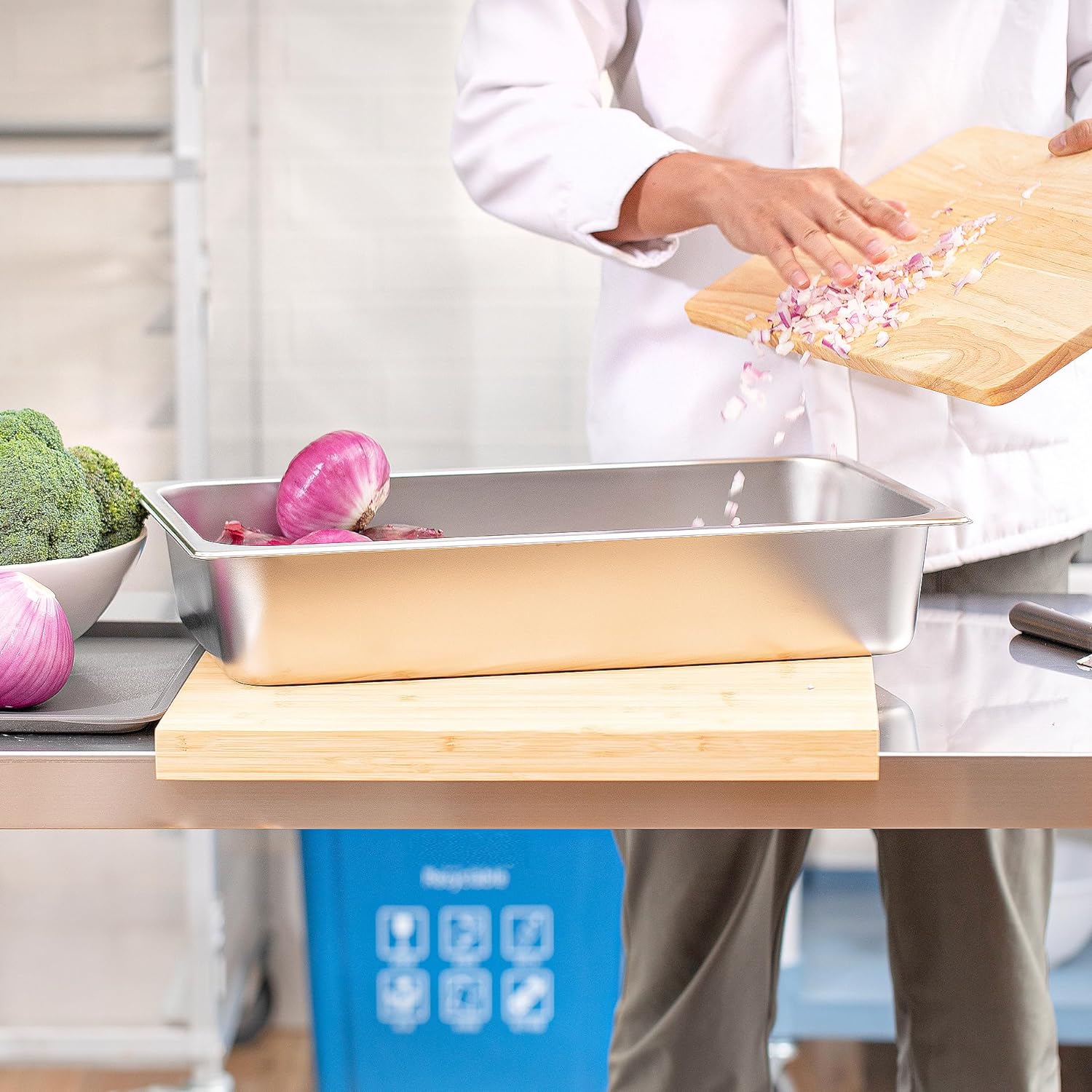 - User Friendly: The catering food pans feature reinforced edges and round corners for added strength and protection where the pan undergoes the most wear and tear, ensuring long-term use. The pans have an integrated design with no welding or gaps, and crimping round edges protect your hands from scratches while ensuring a secure and comfortable grip that is deformation-resistant.