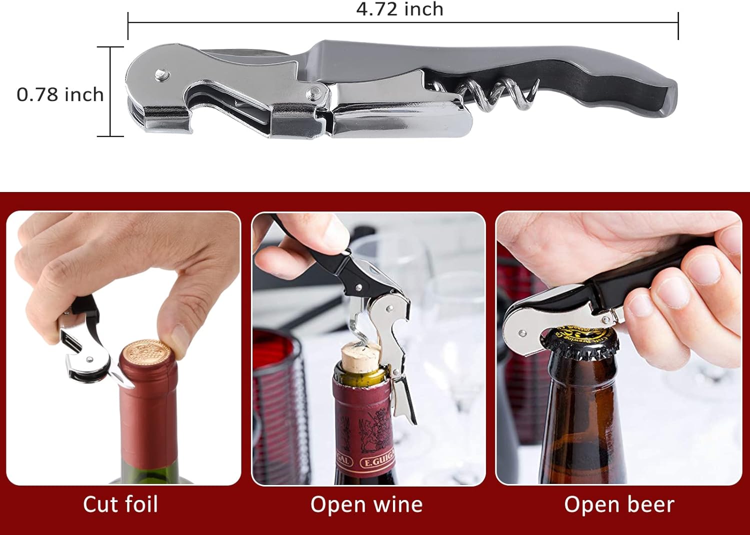 - 【Sufficient quantity】 You will receive 12 gray bottle openers, which are sufficient to meet your daily needs. Enable you to use three-in-one corkscrews adequately in daily life and gatherings. You can also share wine bottle opener with your friends.