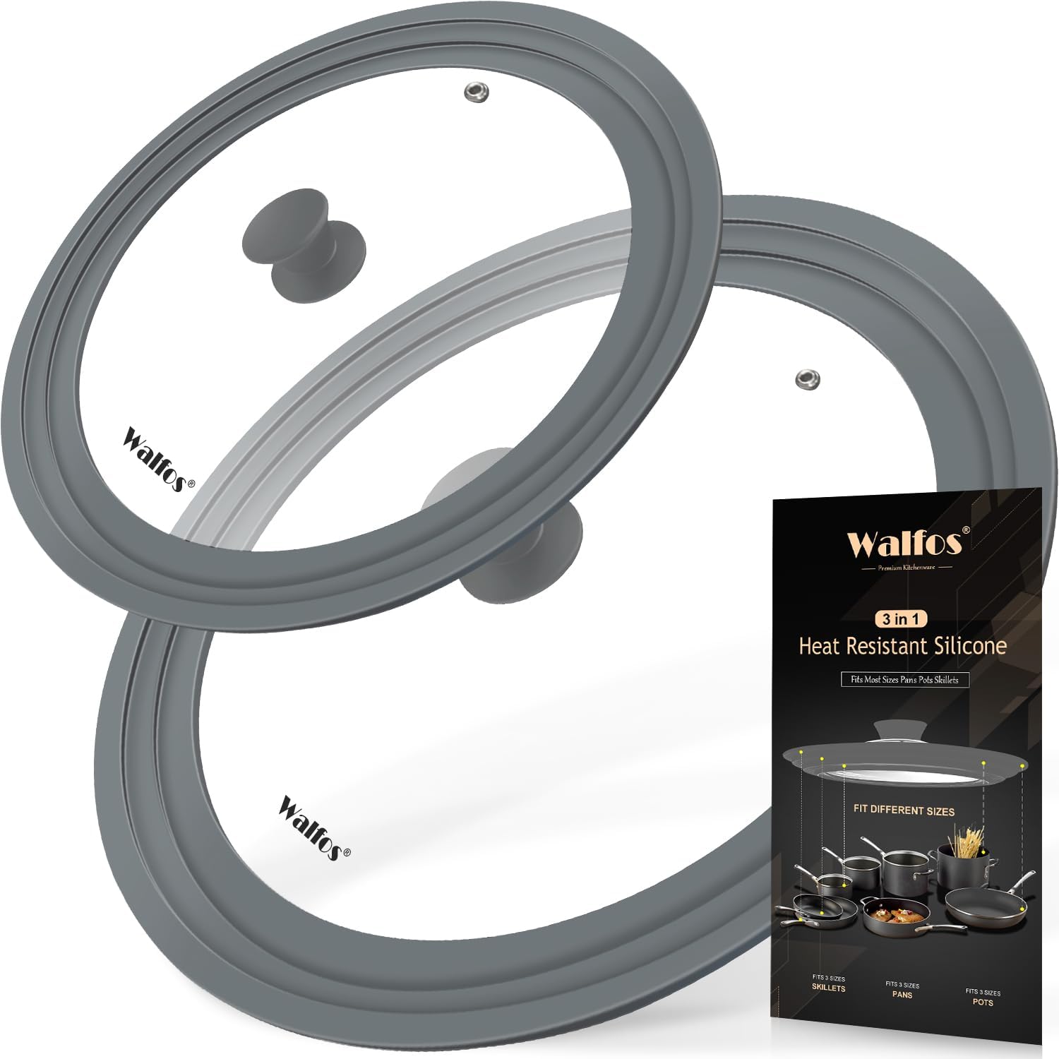 - 【Safety Food Grade Material】Walfos pan lid is made of premium tempered glass and food grade silicone, BPA Free. The Glass lid helps you to say goodbye to metal rusting and the 450°F heat resistant silicone lid with non-slip silicone knob saves you from getting burning. Safe for microwave and dishwasher.