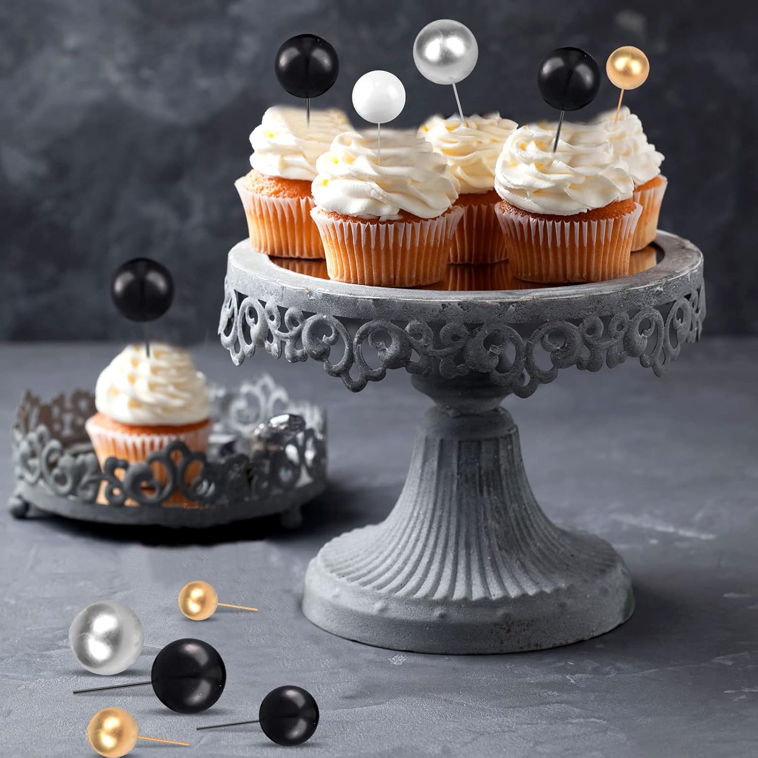 108 Pcs Balls Cake Topper DIY Cupcake Insert Foam Balloons for Cake Baking Wedding Anniversary Birthday Decoration(Black, Silver, White, Gold,Multi Sizes)