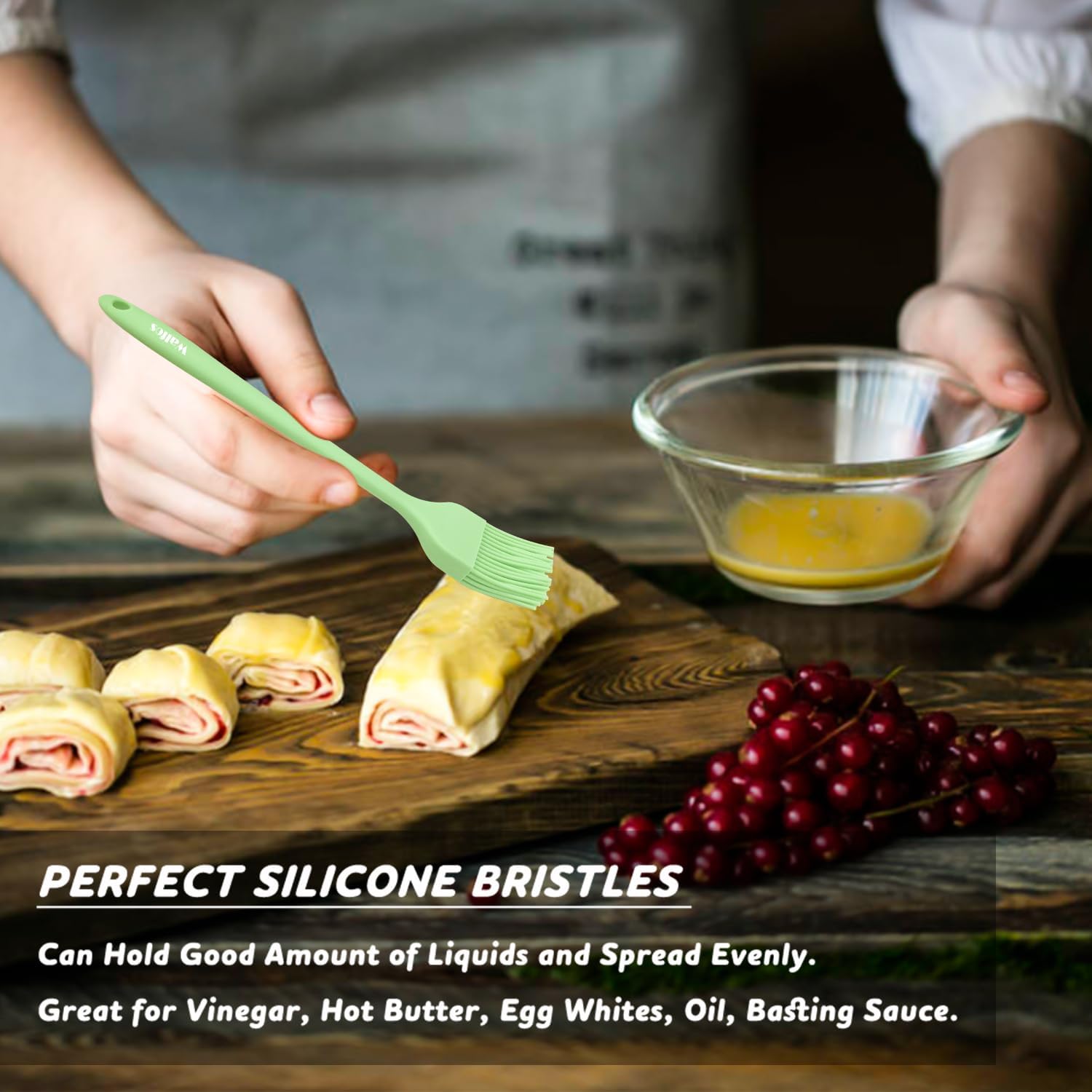 Walfos Basting Brushes Silicone, Heat Resistant Pastry Brushes for Kitchen Cooking, Oil, BBQ Grill, One-Pieces Design,BPA Free and Dishwasher Safe, 2 Pcs (Lime Green)