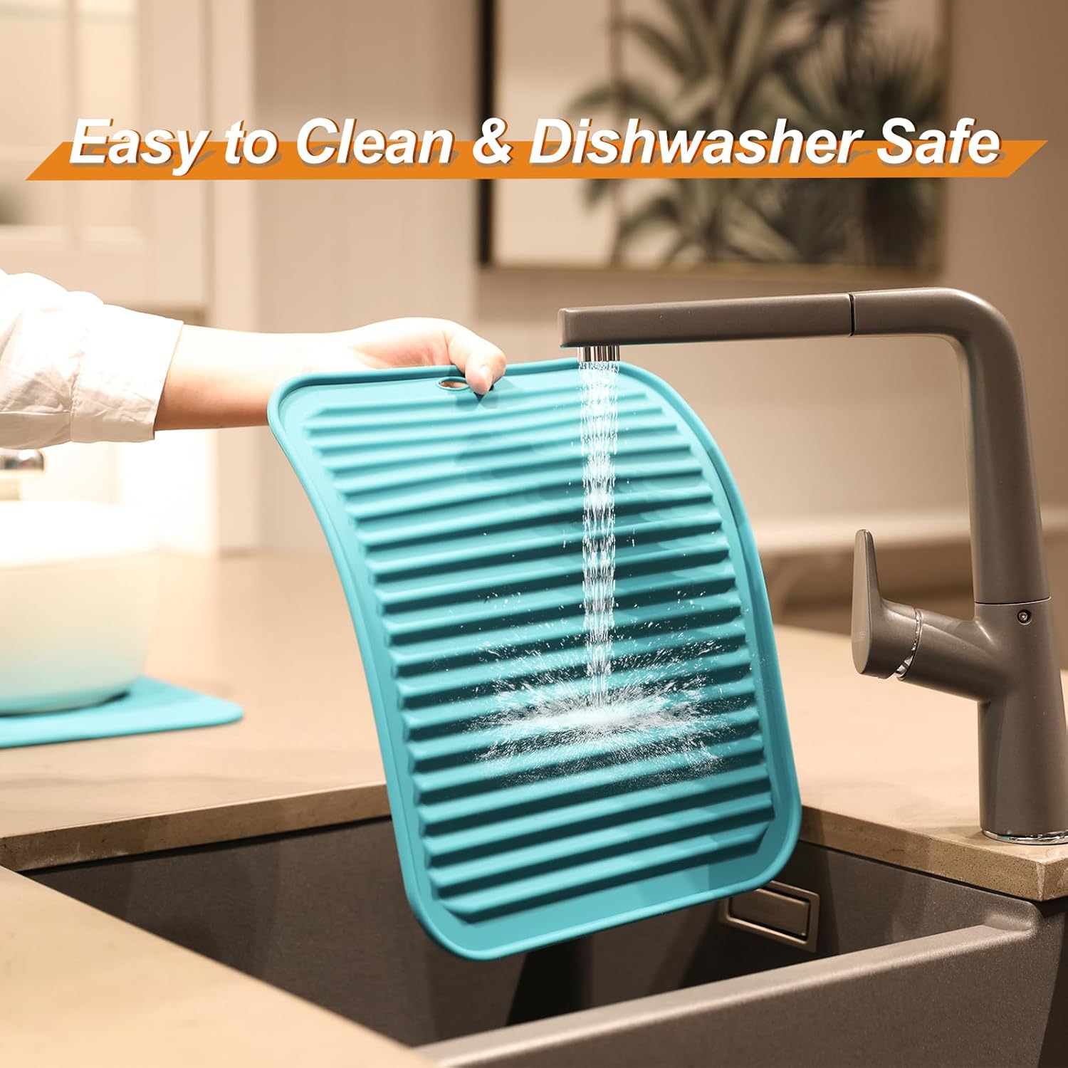 - EASY TO CLEAN & DISHWASHER SAFE - These trivets for quartz countertops are waterproof, plus stain and odor resistant. These kitchen hot pads are safe to pop in the dishwasher. It is non-stick and easy to clean. Roll up or hang on hook, save space. Experience a more convenient kitchen environment with these silicone trivet.