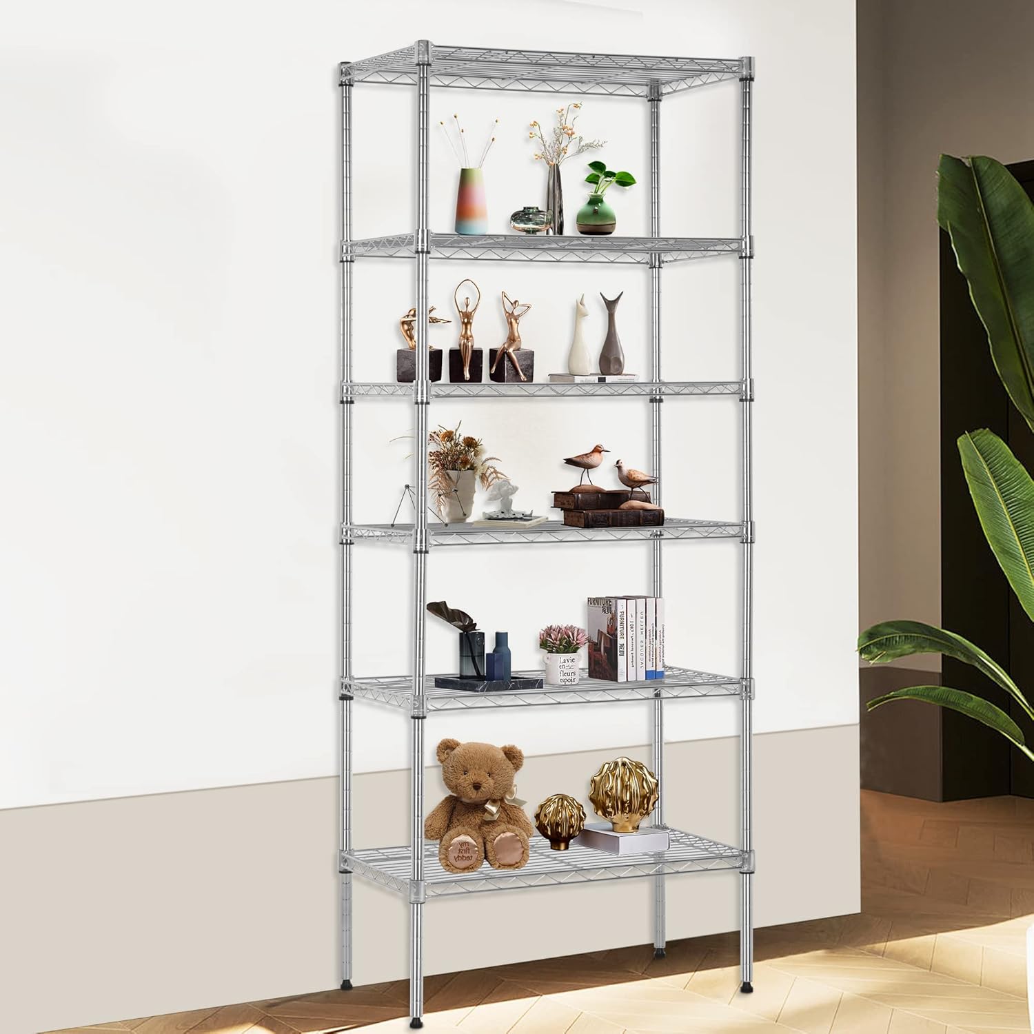 - Multipurpose: This metal wire rack is suitable for various scenarios. You can use this storage rack in various places, such as the bathroom and kitchen garage. Tools, books, household appliances, and other items can all be placed on this metal wire rack.