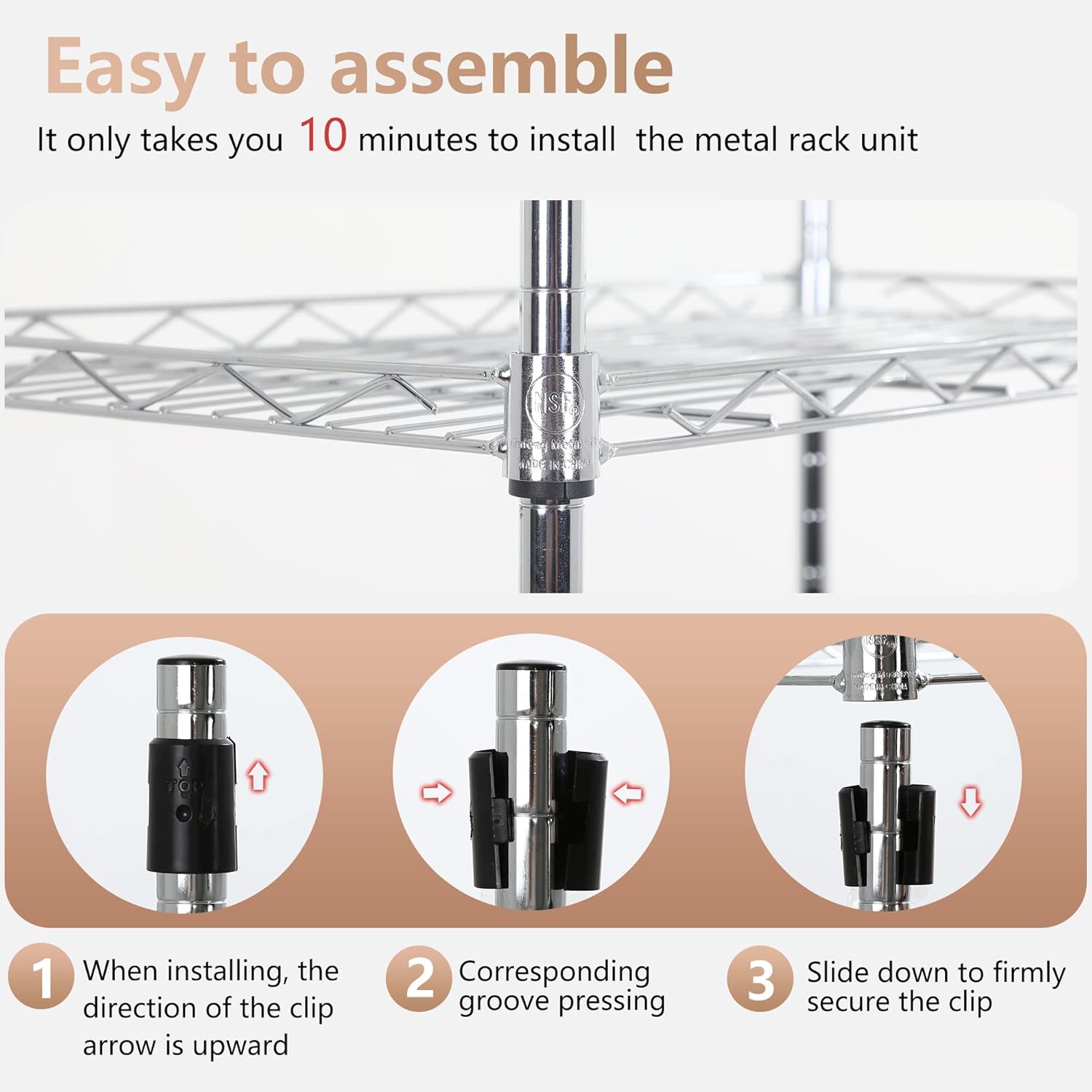 - Durable and sturdy: This shelf is made of heavy-duty steel wire, which is durable and resistant to dirt accumulation and corrosion. After proper assembly, the maximum weight of each shelf layer can reach 150 pounds, and the maximum total weight of the entire shelf can reach 900 pounds.