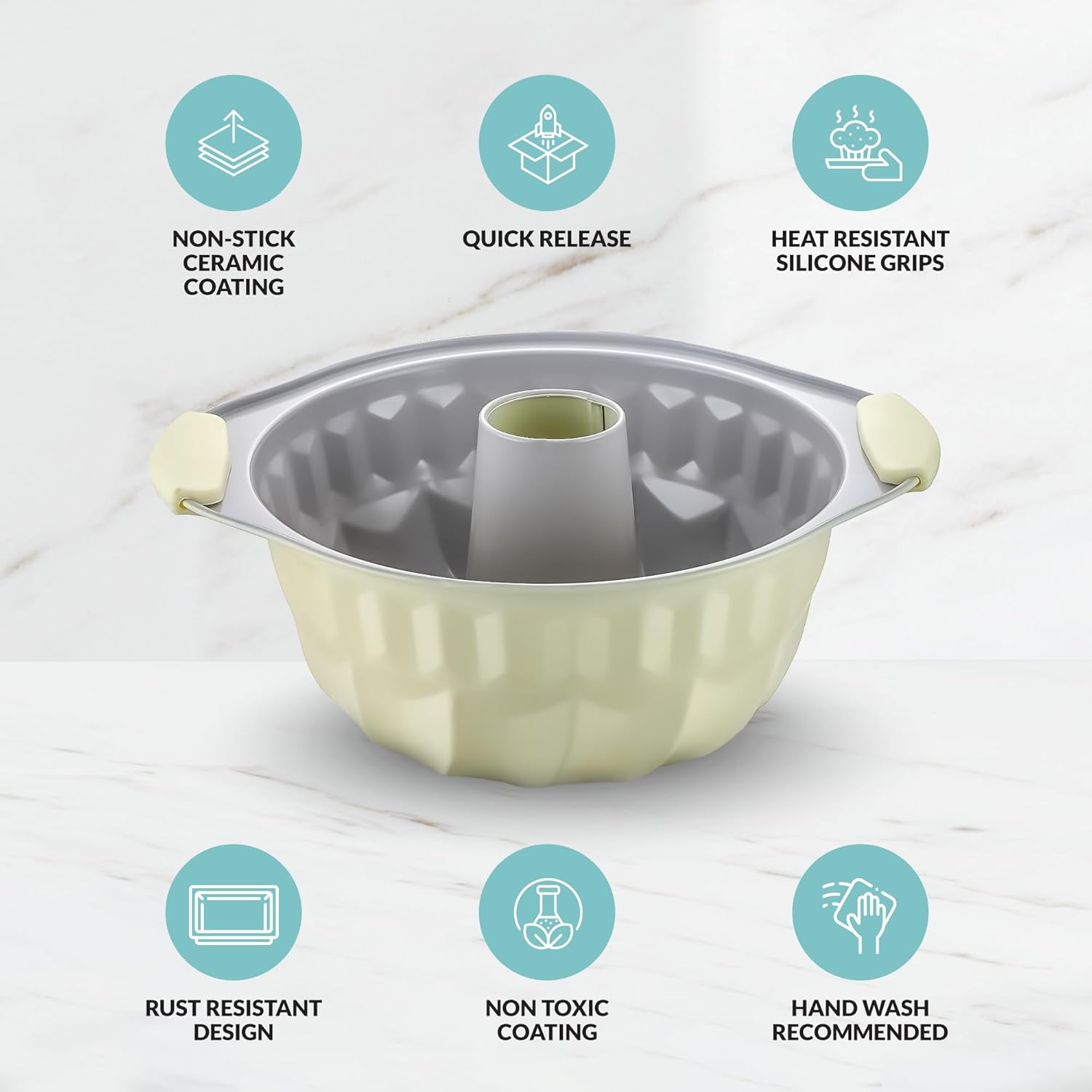 - VERSATILE BAKING MOLD: From fluted cake to tube pan for baking pound cake, this ceramic pan is versatile in baking different types of cakes. It can also be used as a 10 Inches bundt pan, making it an essential addition to your kitchen.