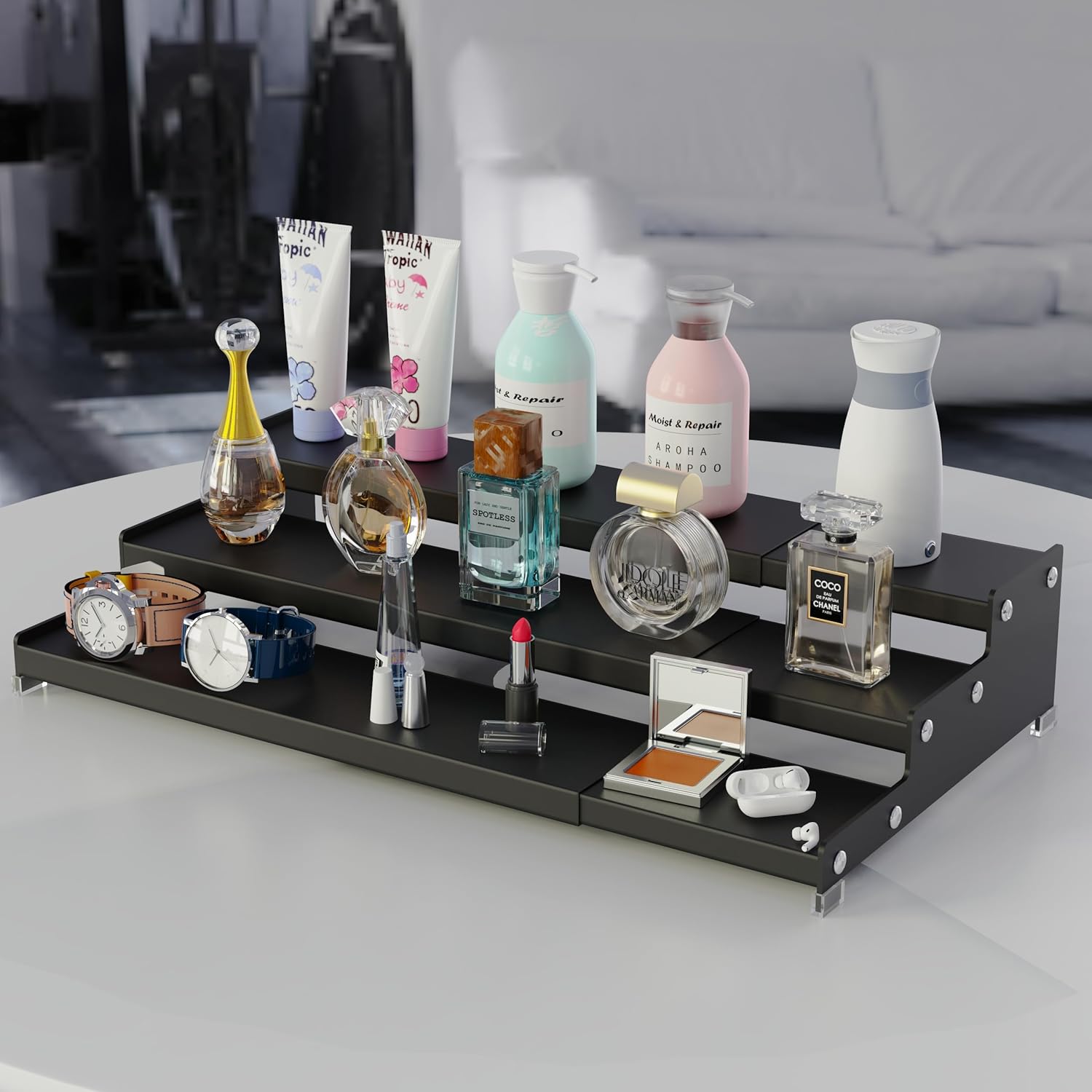 - β[Organize and Save your space]Stepped design to provide you with both space and visibility.you can get what you need quickly and clearly.Create extra space-use it throughout the home; Save for storing and organizing nail polish,perfume, lotions,body sprays,makeup,lipstick and other cosmetics in the bathroom and your other kitchen cabinets.
