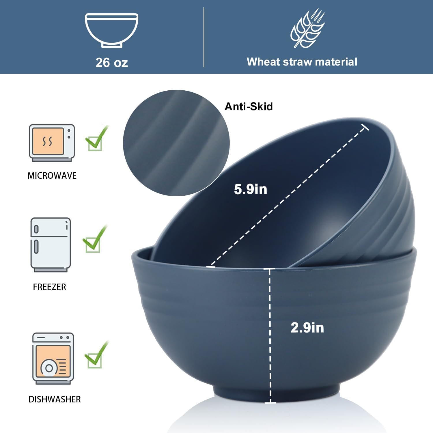 Wheat Straw Bowl Sets,8 PCS Unbreakable Cereal Bowls 26 OZ,Microwave and Dishwasher Safe Bowls,Kitchen Bowl suitable for cereal,salad,snack and soup (Navy Blue)