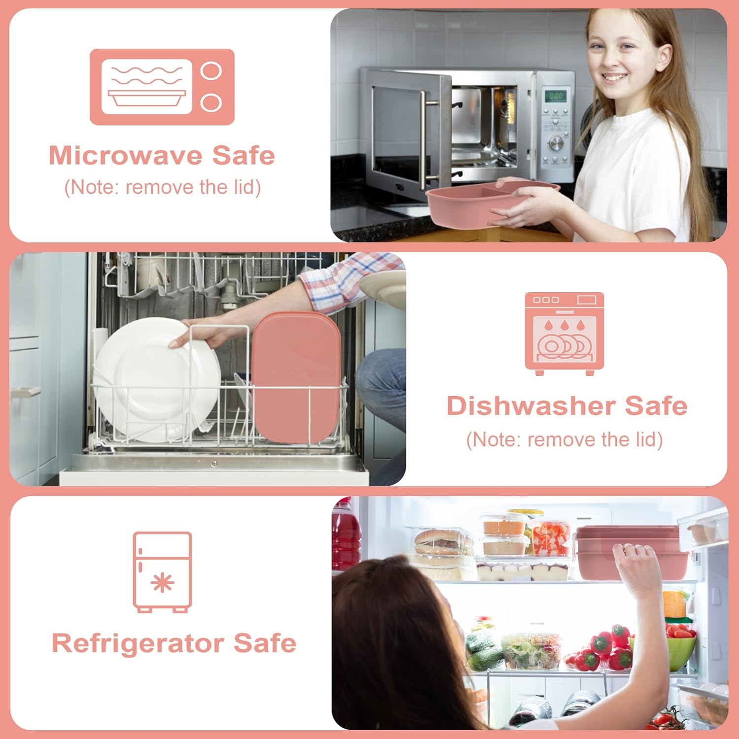 - Food-Grade Materials for Healthy Eating: Our lunch containers is made of high-quality food-grade PP+PE materials, ensuring it is free from BPA. It is safe to use in the microwave, refrigerator, and dishwasher (excluding the lid). Choose a healthier option for you and your family with our dedicated design