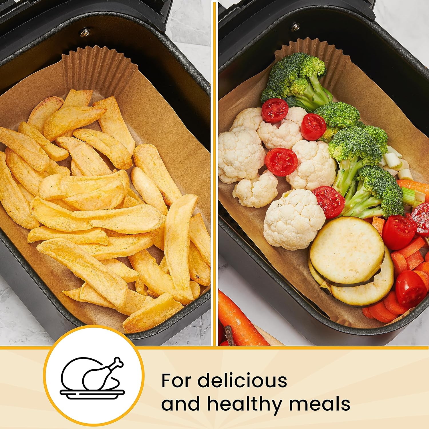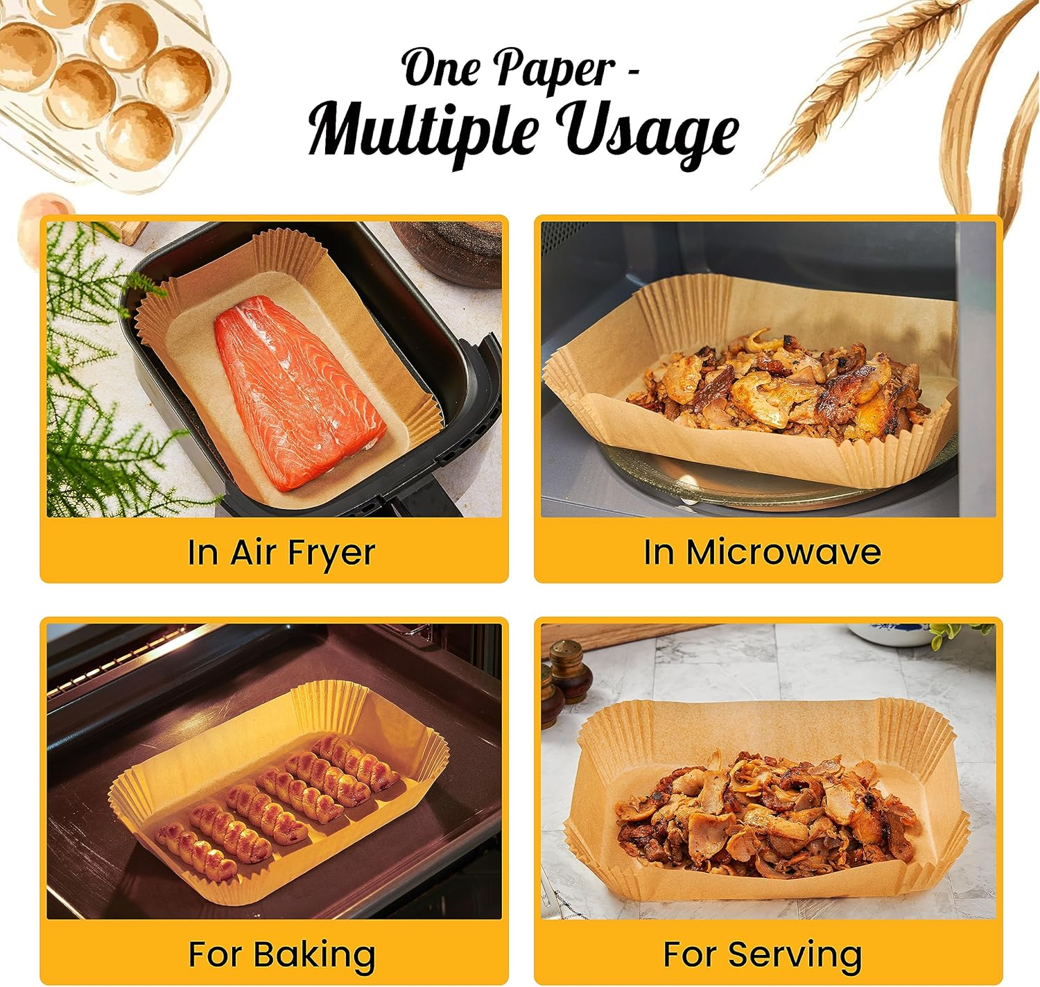 - EASIER CLEANUP & TIME SAVINGS - Simplify your cooking routine with our rectangular disposable air fryer paper liners. Effortless clean-up means more time enjoying your meals!