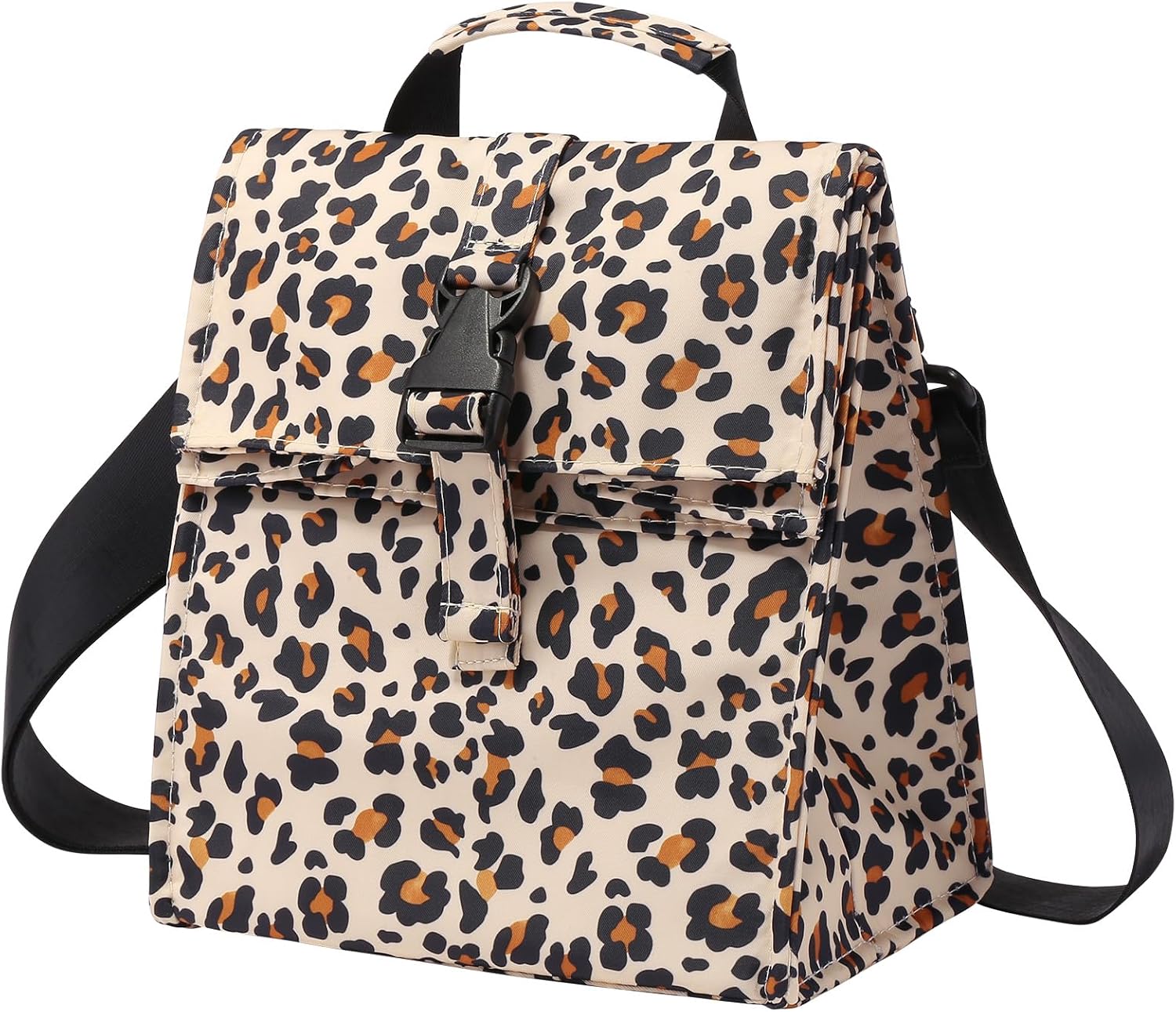 Insulated Foldable Lunch Bag- Lightweight Portable with Adjustable Shoulder Strap Lunch Box for Men, Women, Office, Work, Picnic, Hiking and Beach (Leopard(Soft Fabric))