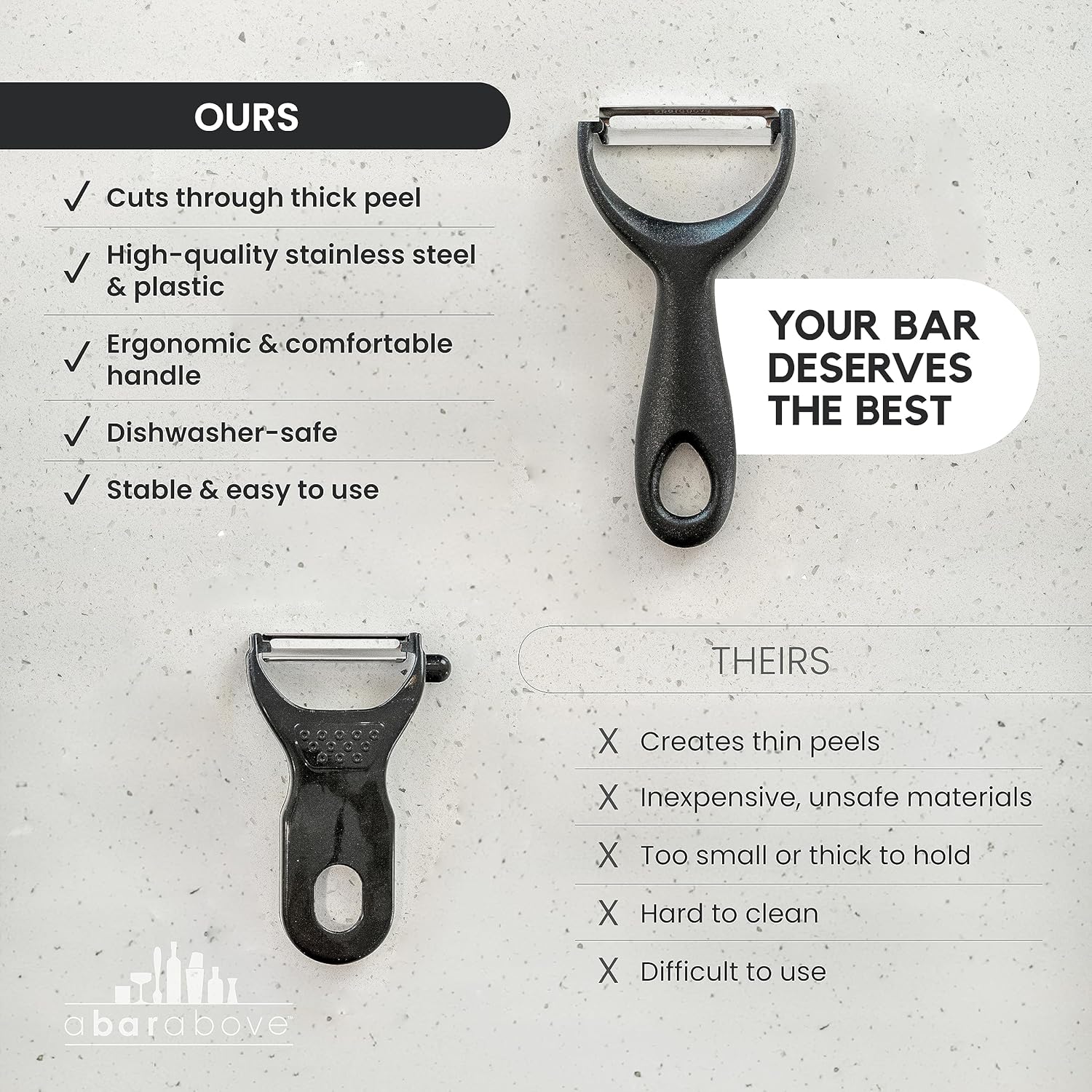 - A KEY PIECE IN YOUR BAR KIT: A Bar Above offers a full range of matching bar tools, and this stainless steel citrus peeler is a must-have for any setup. Use it with our strainers, shakers, and jiggers to complete your kit. Whether you are starting your collection or expanding your gear, this peeler combines utility, durability, and sleek design in one essential tool.