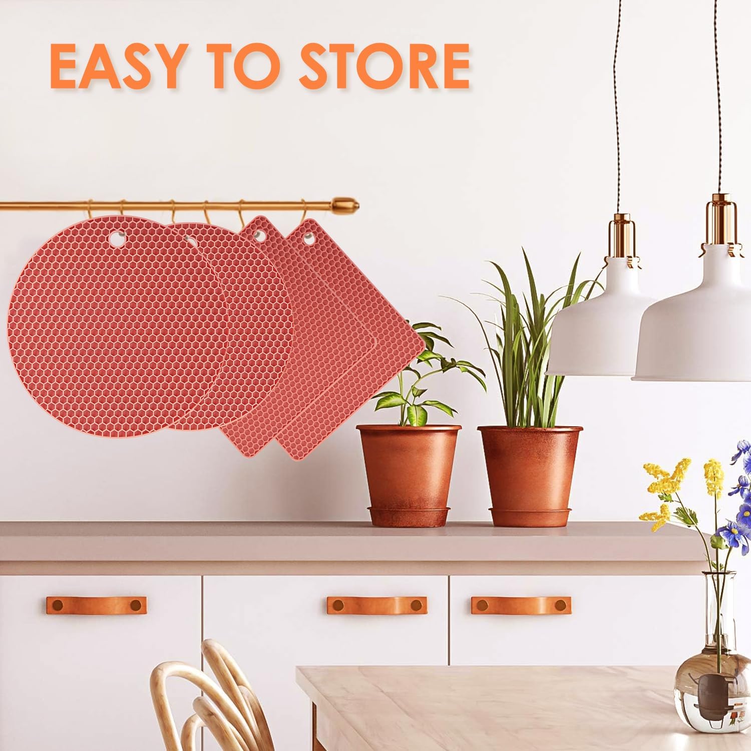- 🎯 NON-SLIP SILICONE TRIVETS: Our silicone trivets for quartz countertops features a honeycomb design with non-slip function, you can easily carry the hot cast iron pot from the stove to the marble table top without worrying about it slipping, providing a good grip to protect your hands and the table from the heat. these are a practical gift to any kitchen lover.