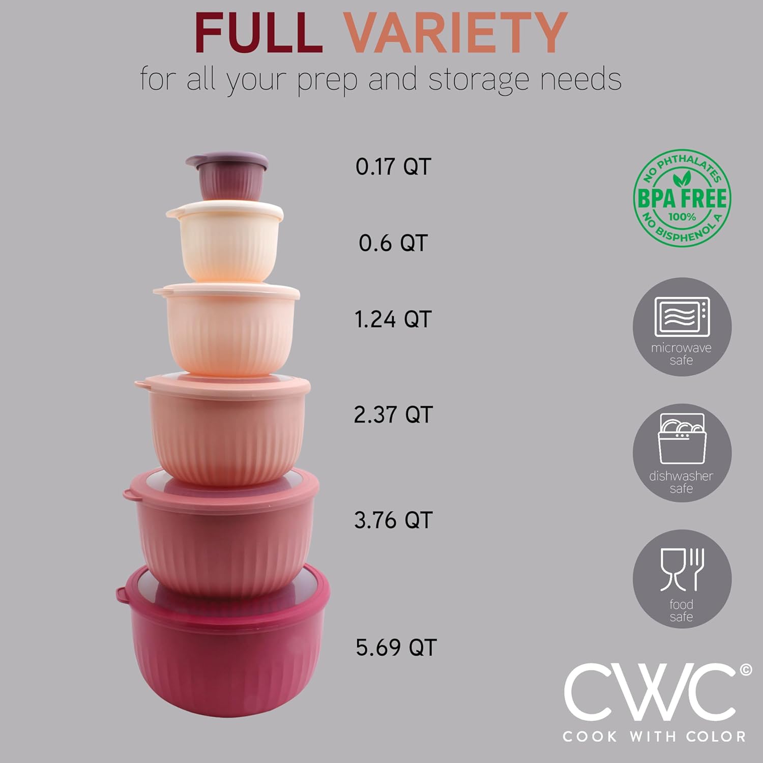 COOK WITH COLOR Prep Bowls with Lids- Wide and Deep Nesting Plastic Small Mixing Bowl Set with Lids, 12 Piece Set - Deep Bowls, Rose