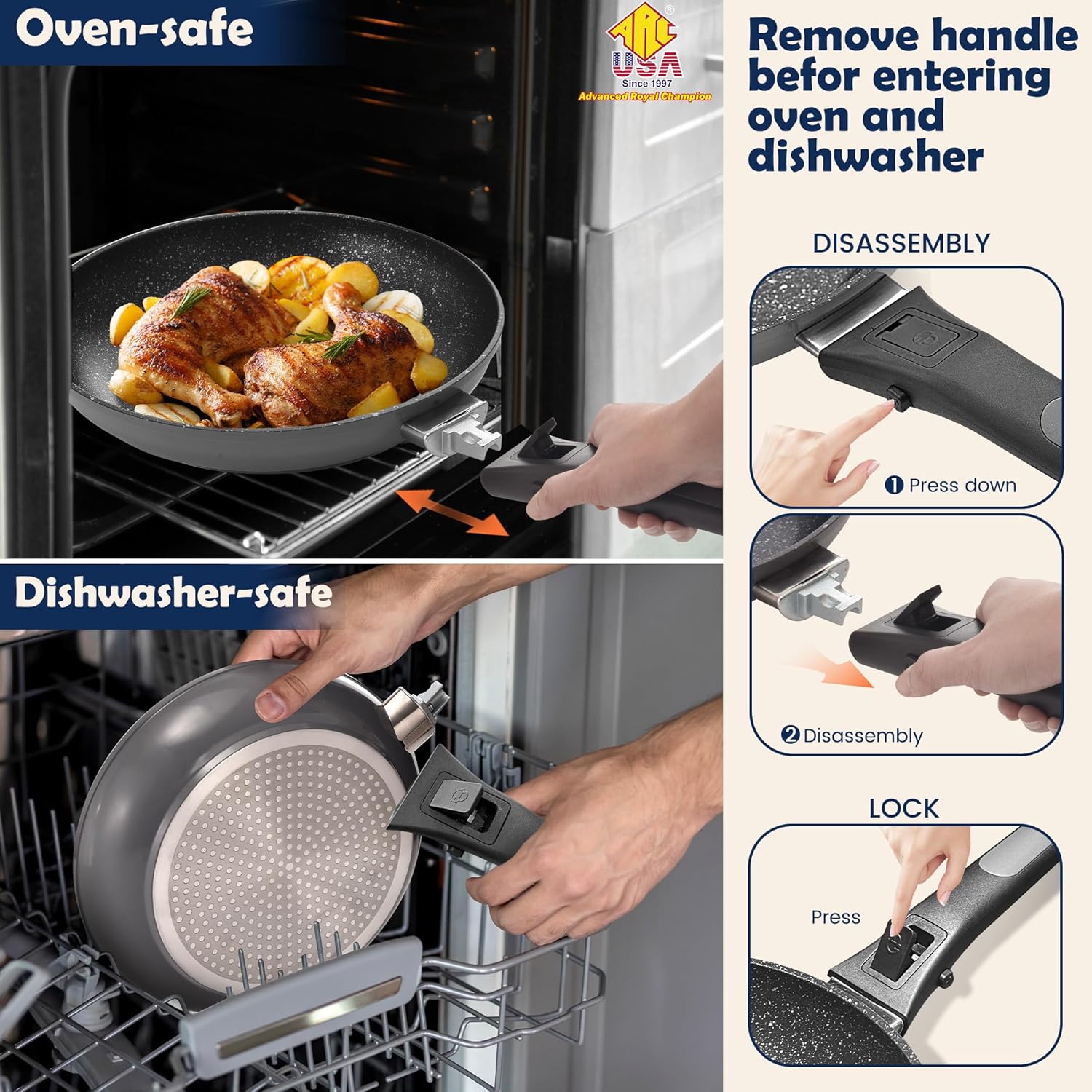 ARC Nonstick Frying Pan Skillet With Removable Handle,10 Inch Skillet with Lid Egg Pan Non Stick Saute Pan, Oven and Dishwasher Safe, PFOA Free Cookware Cooking Pan For Induction Cooktops