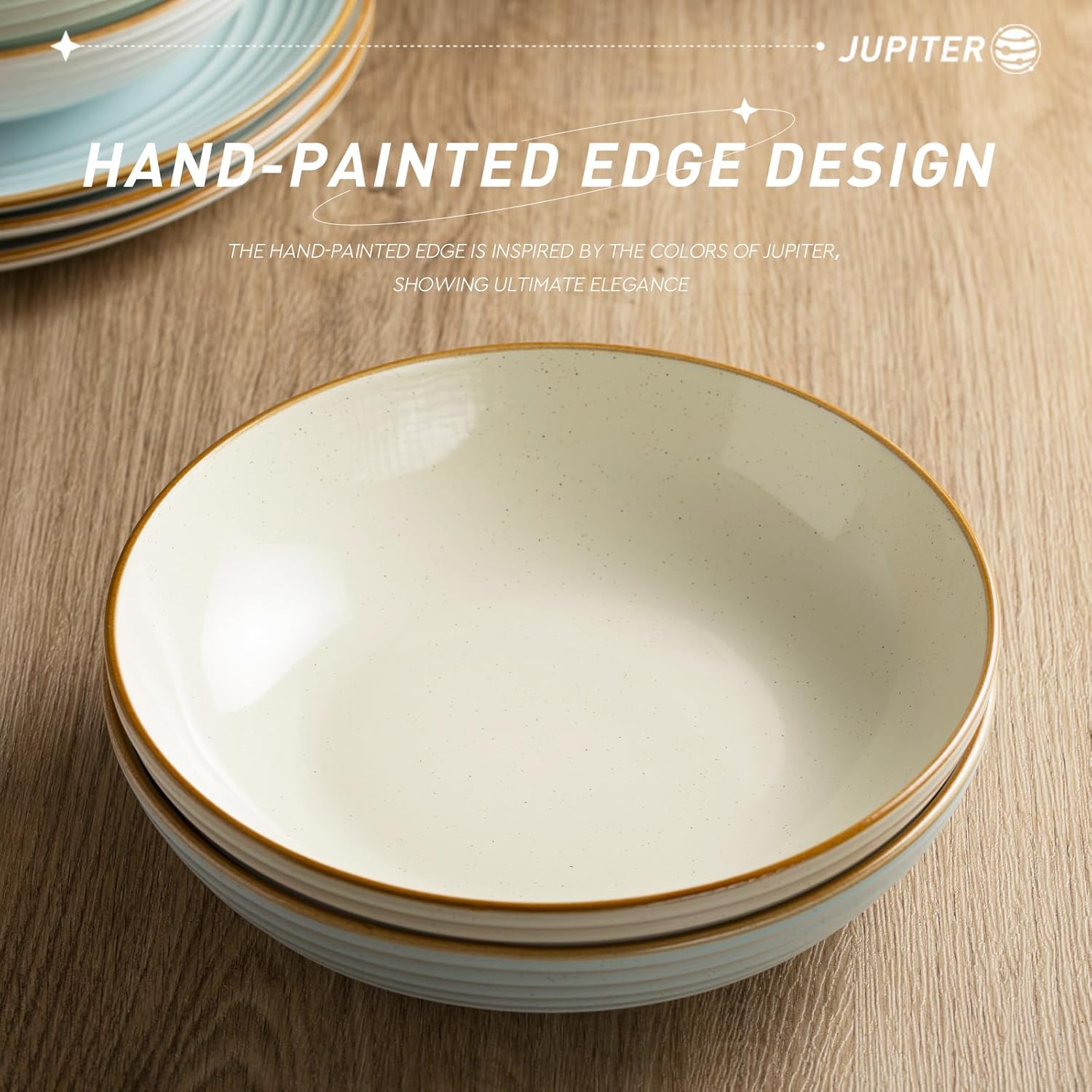 - 【Attractive Design】Our pasta bowl was elaborated by artisans. Its speckles and hand-painted edge are great distinctive. The design of ring is inspired by Europa's orbit around Jupiter. Delicious food should be served in beautiful dishes.