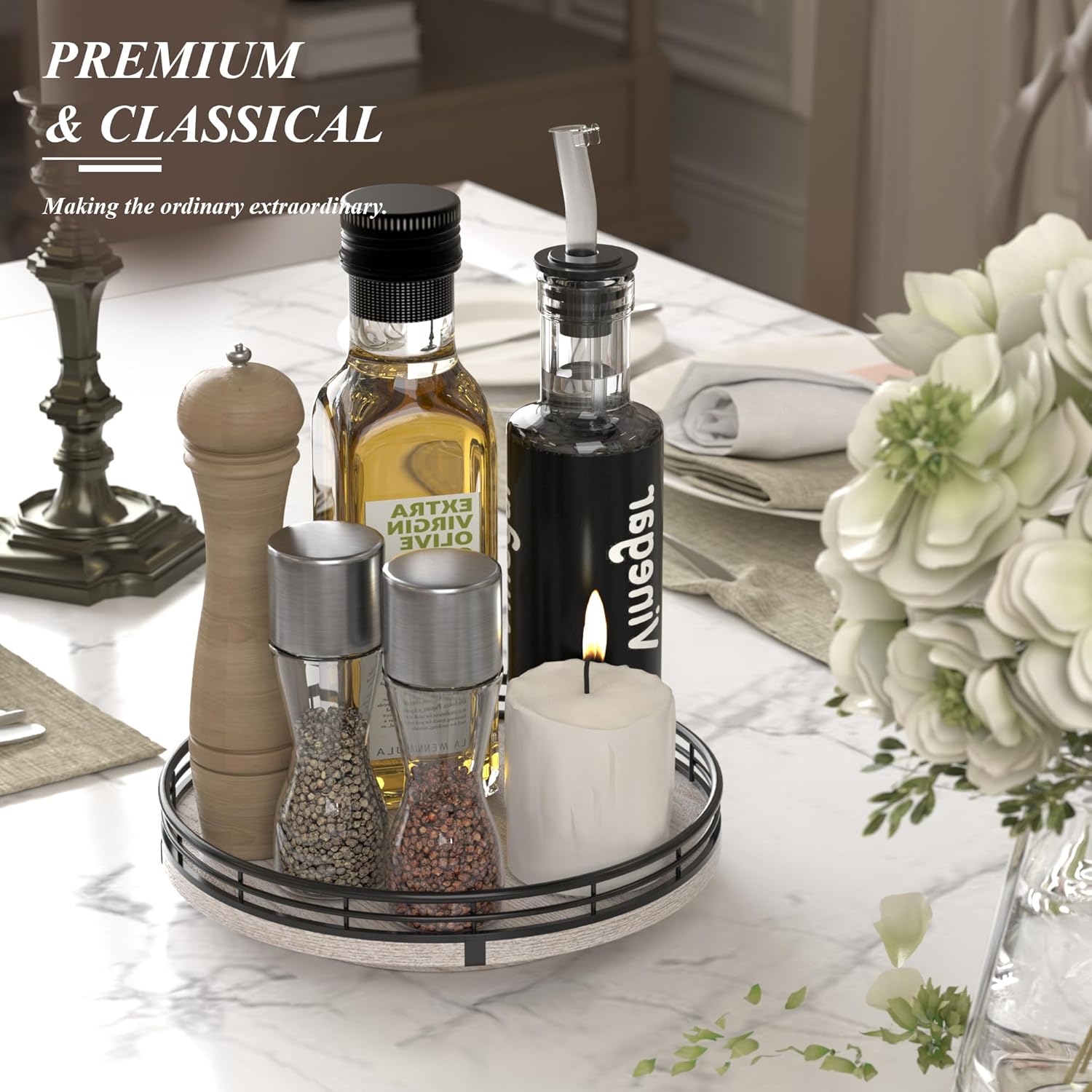 - πππππππ ππππππππ: Our farmhouse lazy Susan made of natural ash wood veneer, sturdy, durable, and beautiful in texture. It is known for its durability, strength, and aesthetic, as well as it can handle heavy use and resist wear and tear. Widely used as coffee table decor, kitchen decor, centerpiece table decortations.