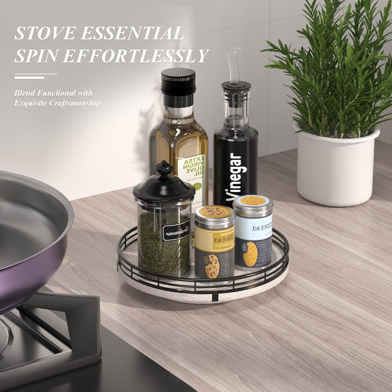 - πππΒ°ππππππππ: The base is made of solid wood, and the spinning mechanism is made of steel ball bearings, which are well-built and allow for 360Β°smooth spinning. This Lazy Susan organizer is very attractive and very easy to use to keep your spices, condiments, and more organized and accessible.