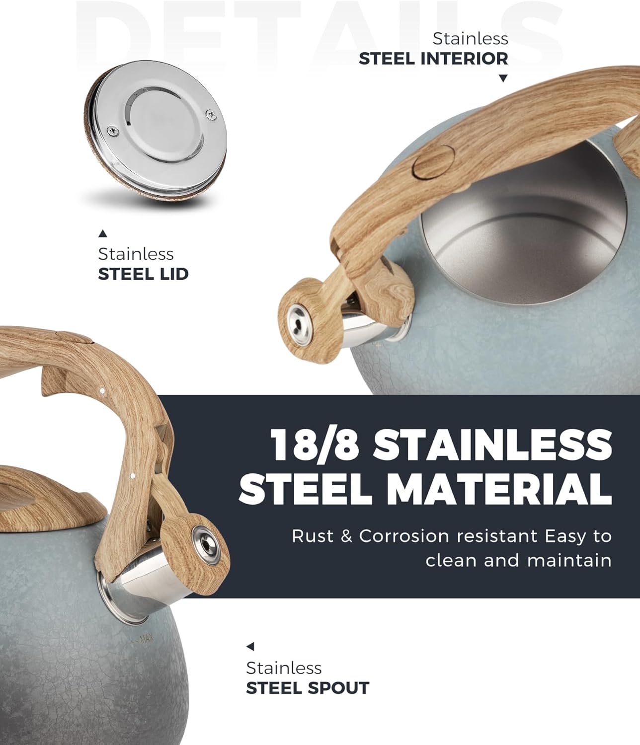 POLIVIAR Tea Kettle, 2.7 Quart Stovetop Tea Kettle, Audible Whistling Teapot with Crackle Finish, Food Grade Stainless Steel for Anti-Rust, Anti Hot Handle, Suitable for All Heat Sources (JX2023-LYL)