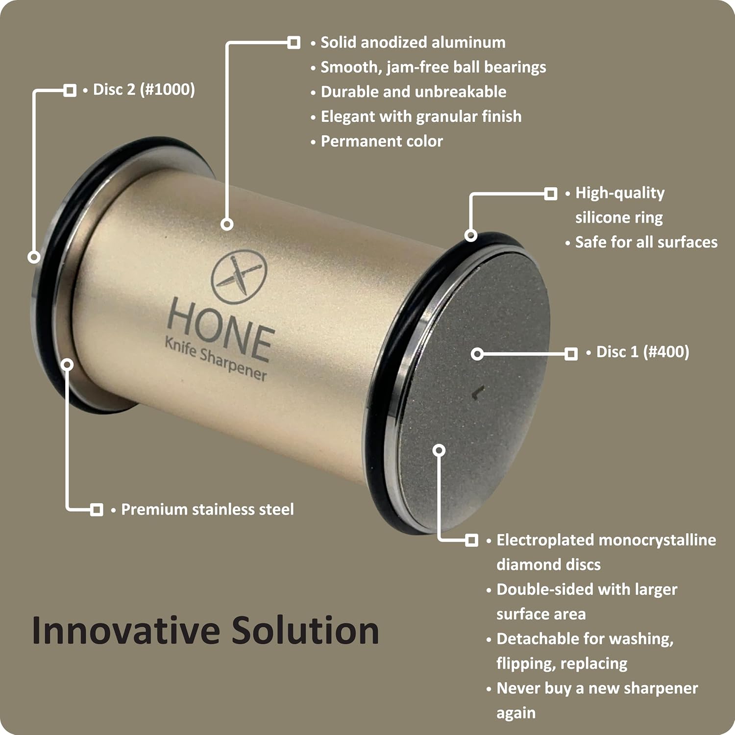 - ๐๐ก๐๐๐ก๐๐๐ฅ๐๐ ๐๐ก ๐๐๐ก๐๐๐: Experience the pinnacle of durability and reliability with the meticulously crafted HONE Knife Sharpener, setting a new standard for exceptional build quality in rolling knife sharpeners.