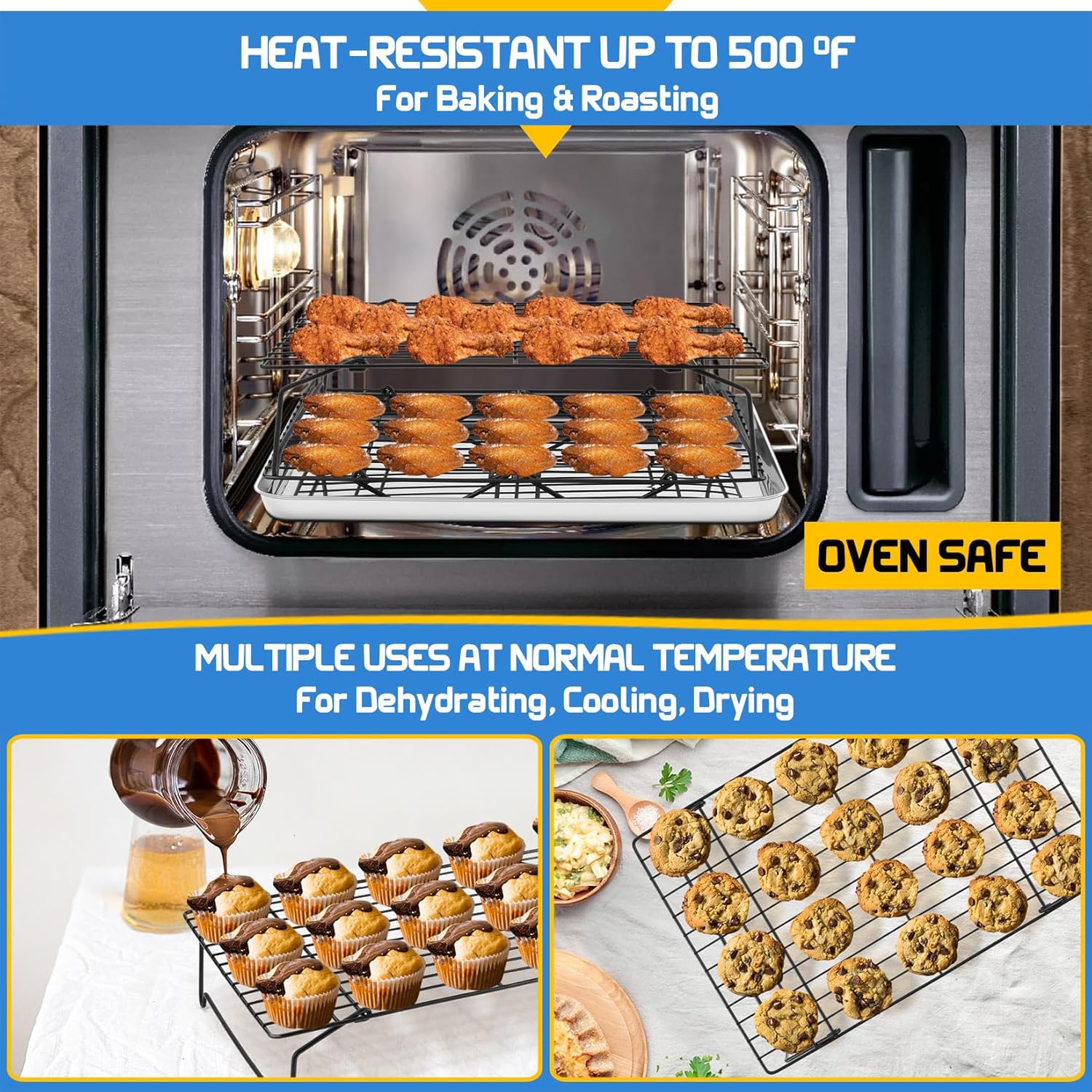 - 【NONSTICK & EASY CLEAN】Overall wire surface is finished by nonstick coatings, which makes surface smooth and ensures baked food easily come off the rack, Easy clean up in a breeze, Smooth edges without rough spots for protecting your hand, Simply wipe racks with soft dishcloth under warm soapy water, Hand-wash recommended