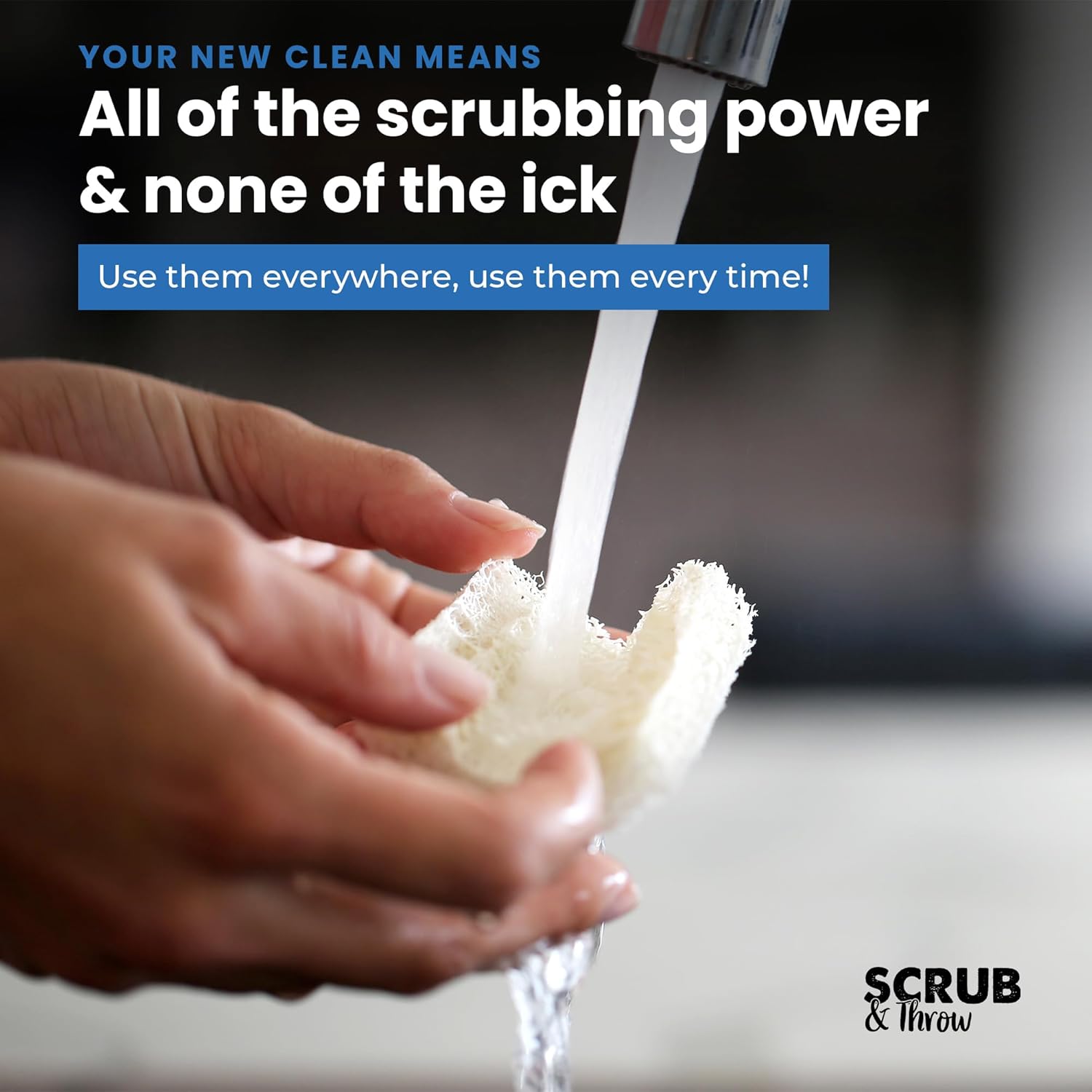 - 15 XL LOOFAH SCRUB SPONGES β Same great scrub, now twice the size! Get rid of stinky, old sponges in your home! 15 all-purpose, natural scrub sponges intended for one day use, yet durable enough to last for weeks and to tackle the toughest cleaning jobs