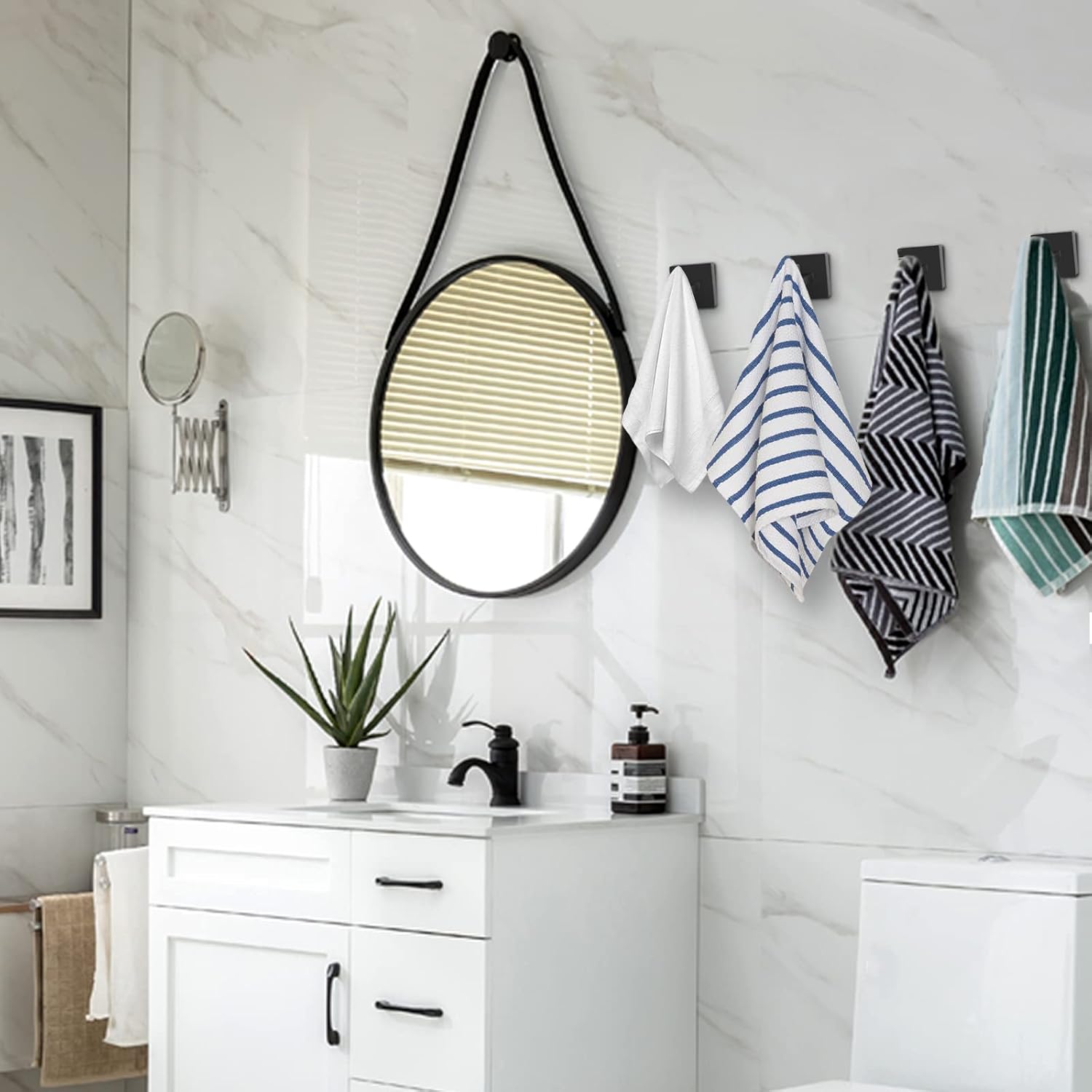 IBosins 8 Pack Towel Hooks Hand Towel Holder for Bathroom Wall Livingroom Bedroom Kitchen Closet Heavy Duty Stainless Steel Hook Hanger for Robe, Bath Towel, Coat (Square Matte Black)