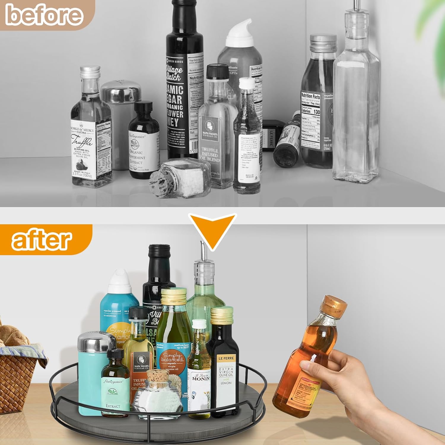 - Smooth 360° Spinning:Rotates in a circle for easy access to condiments, spices, seasonings, cans, cooking supplies smoothly and stably; built-in handles easy to grip and move