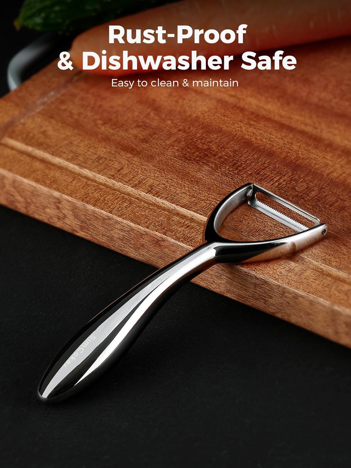 - Durable and Hygienic Material: This peeler is crafted from food-grade 304 stainless steel in one piece. It’s rust-proof, easy to clean, and dishwasher-safe for hassle-free maintenance. Enjoy a safer and tidier kitchen experience