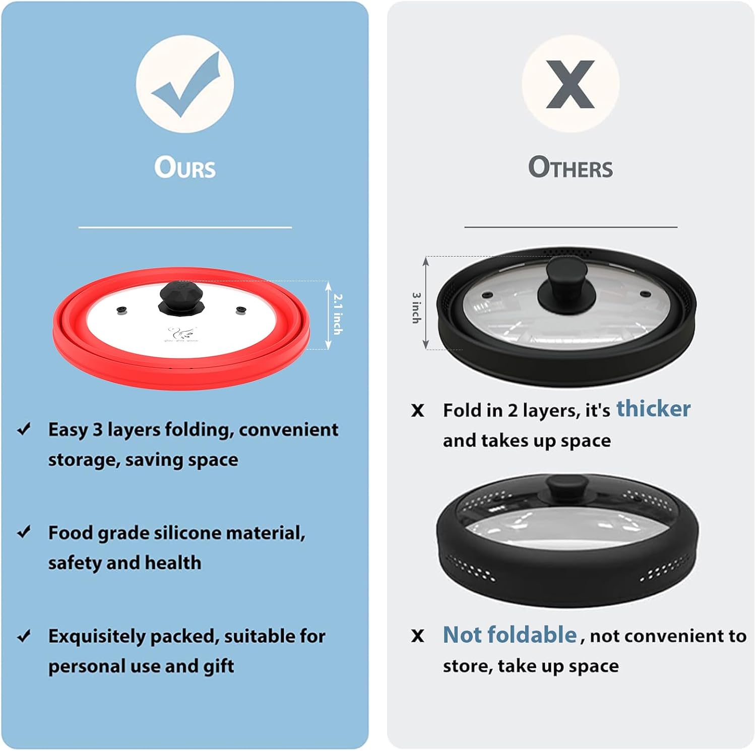 Microwave Splatter Cover Vented Glass Splatter Guard Lid with Collapsible Silicone for Food as Pot Cover 11.8 inch Large Plate for 6 7 8 9 10 11 inch Plate Bowl Red