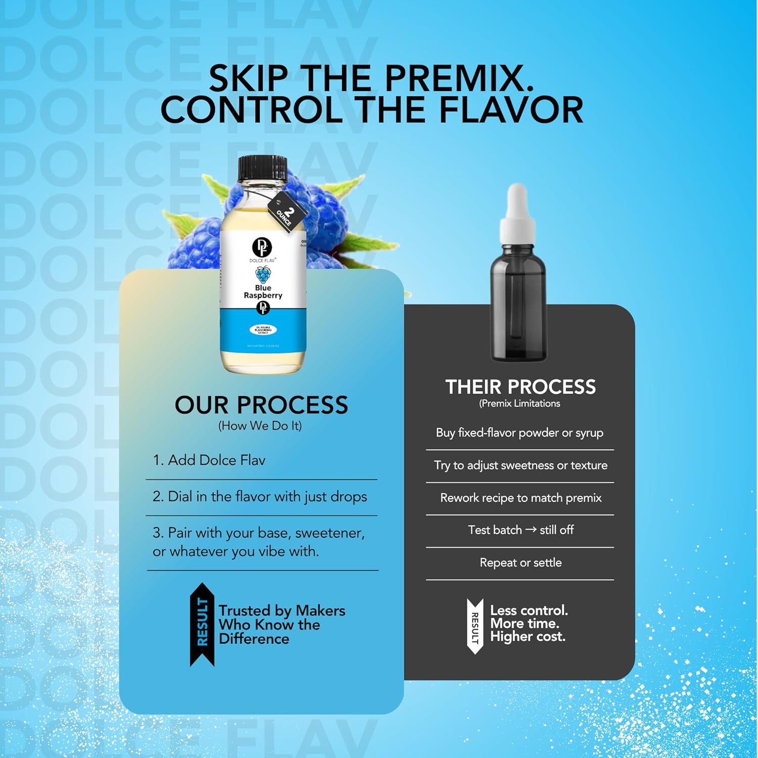 Dolce Flav Blue Raspberry Extract – 2 Ounce Oil-Soluble Kosher, Sugar-Free, Concentrated Blue Raspberry Flavoring for Baking, Chocolates & Desserts, Includes Measured Dropper
