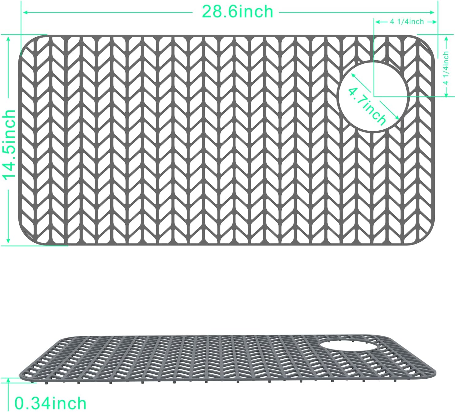 GUUKIN Sink Protectors for Kitchen Sink - 28.6"x 14.5" Silicone Kitchen Sink Mat Grid for Bottom of Farmhouse Stainless Steel Porcelain Sink with Right & Left Drain(Grey), 2814R