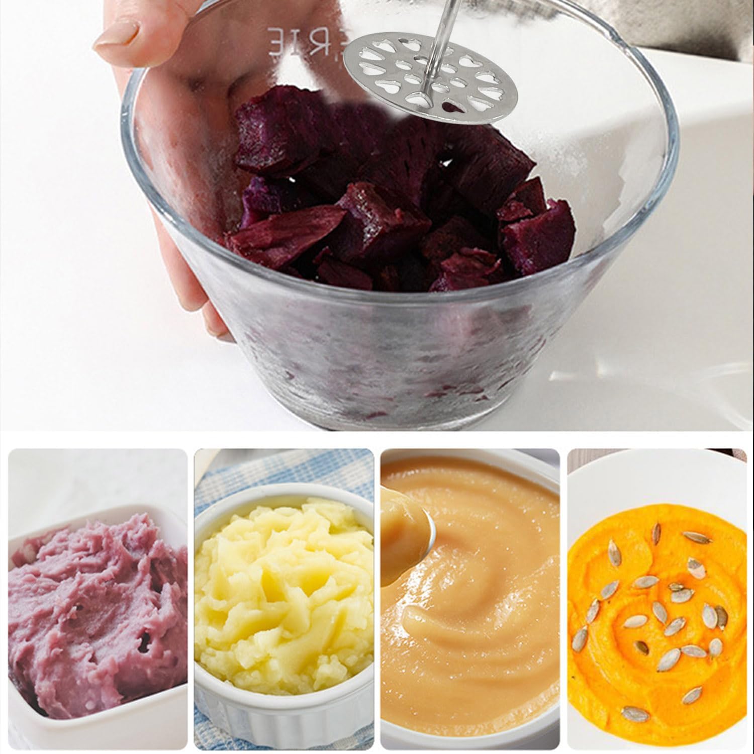 - Stainless steel: Crafted from solid stainless steel, this sturdy potato masher will give you years of use without rusting, corroding, or cracking.durable materials it mashes with no flexing or bending.