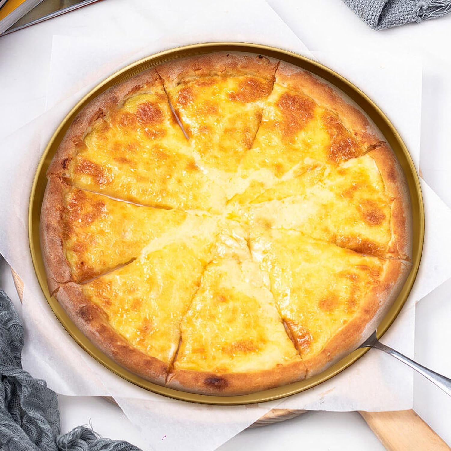 - Crispier Crusts, Less Mess: Perforated design make sure airflow under crust prevents soggy bottoms. Raised edges contains spills for easy transfer in/out of oven