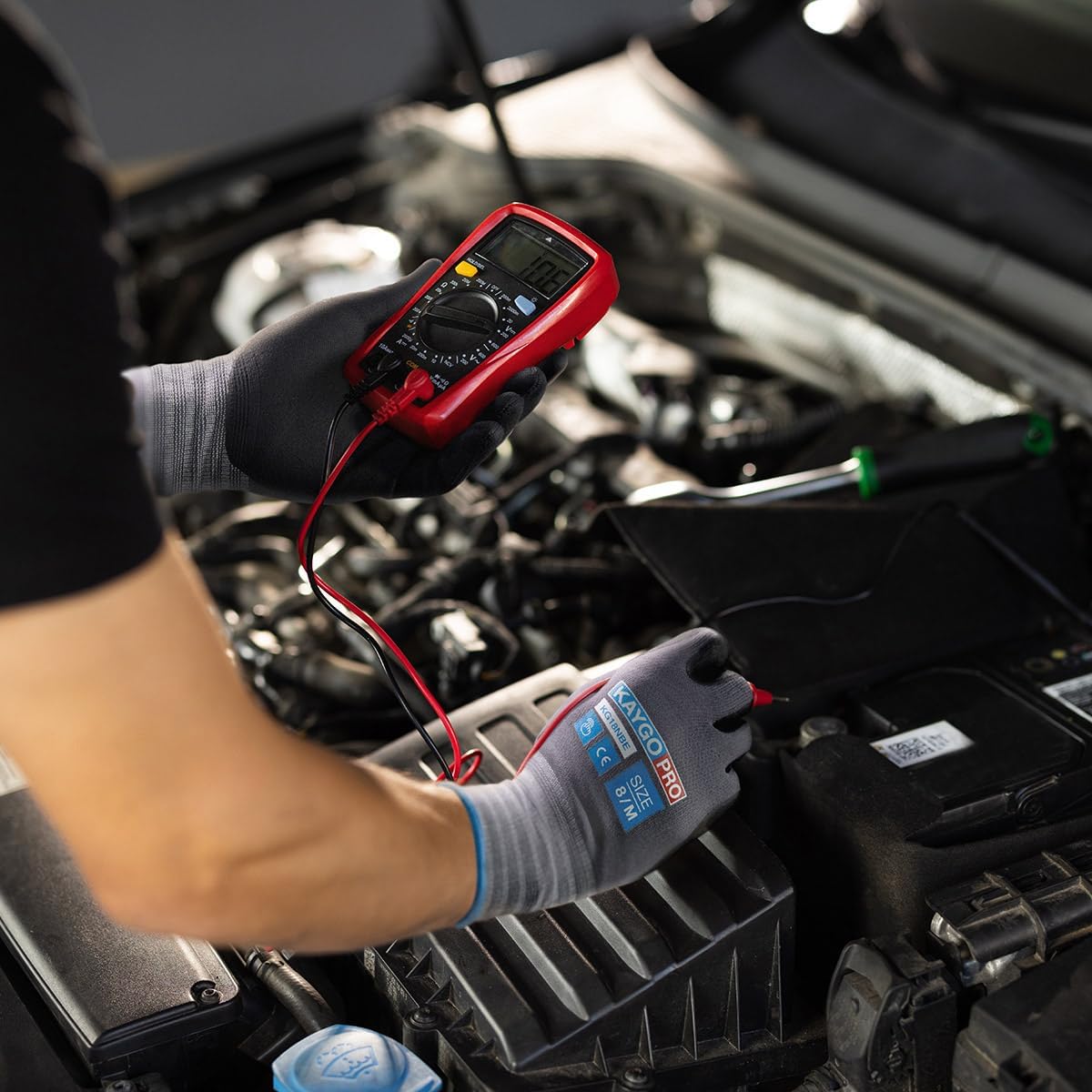 KAYGO Safety Work Gloves MicroFoam Nitrile Coated, 3 Pairs KG18NB,Seamless Knit Nylon Glove with full fingers Touchscreen, Ideal for Automotive,Warehouse,Construction (Gray, X-Large)