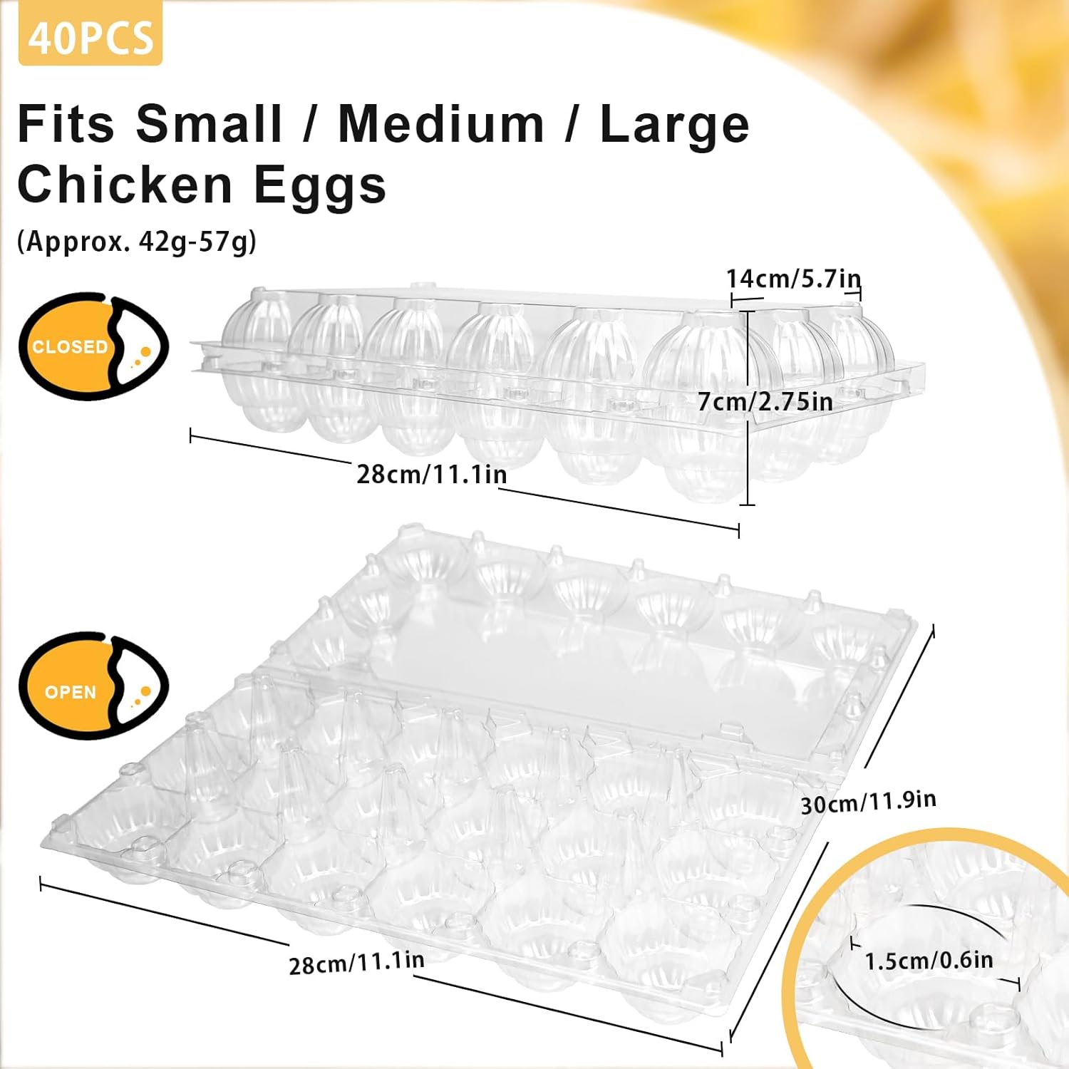 Egg Cartons 18 Count - 40 Pack Egg Cartons Cheap Bulk - 3x6 Grids Plastic Egg Carton for Fresh Eggs, Home, Farmers Market (Medium)