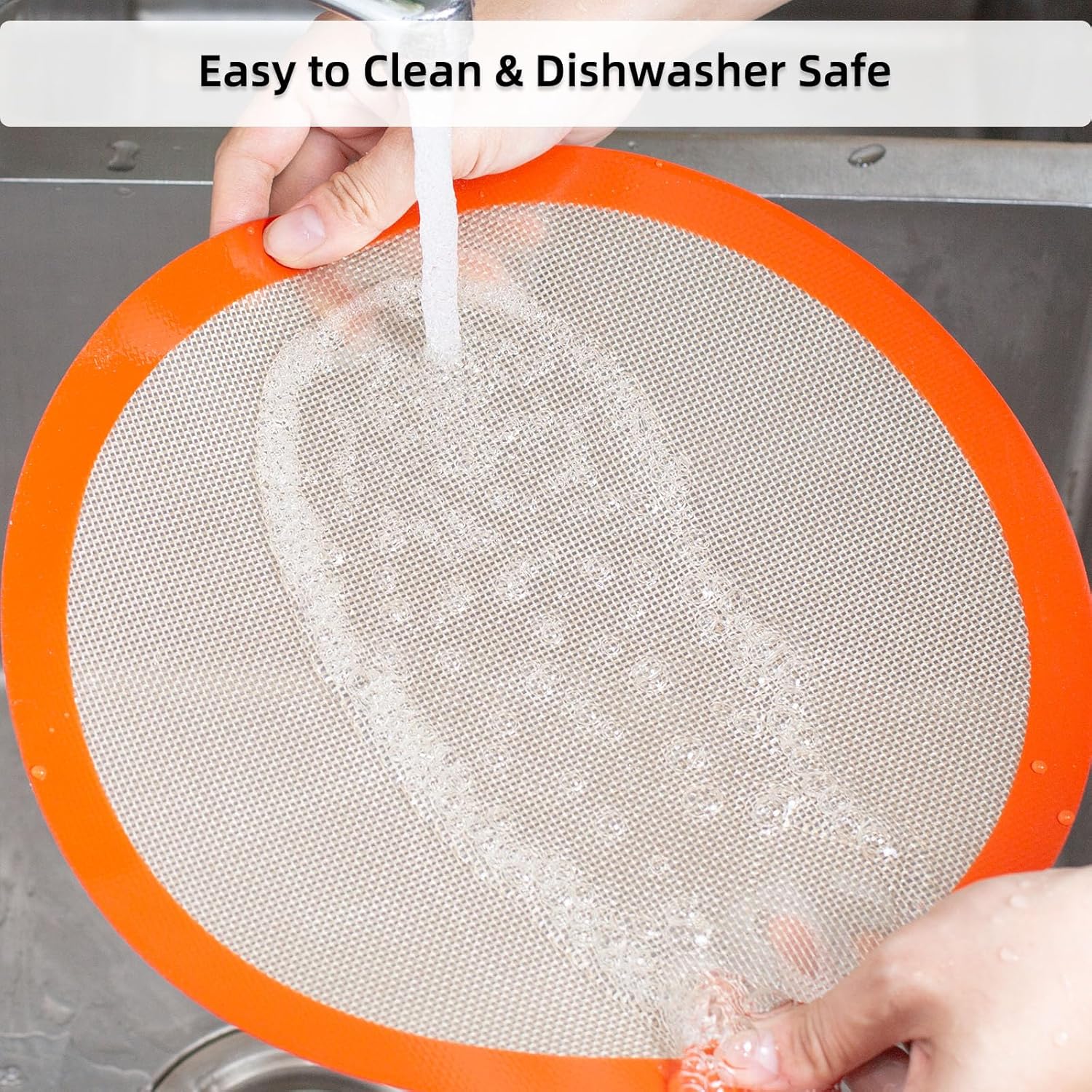 - 🍕【SMOOTH SURFACE, TOUGH AND TENSILE INTERIOR】These non-stick silicone round baking mats 12 inch are easy to use whether you are highly skilled in baking or not. With smooth, shiny surface, you will find the cleanup an easy peasy. Just simply rinse off in warm soapy water and let it dry. If you want to maximize time saving, dishwasher is also a good alternative. On the other hand, with tough & tensile interior, they’re very durable which helps you save money imperceptibly day by day.