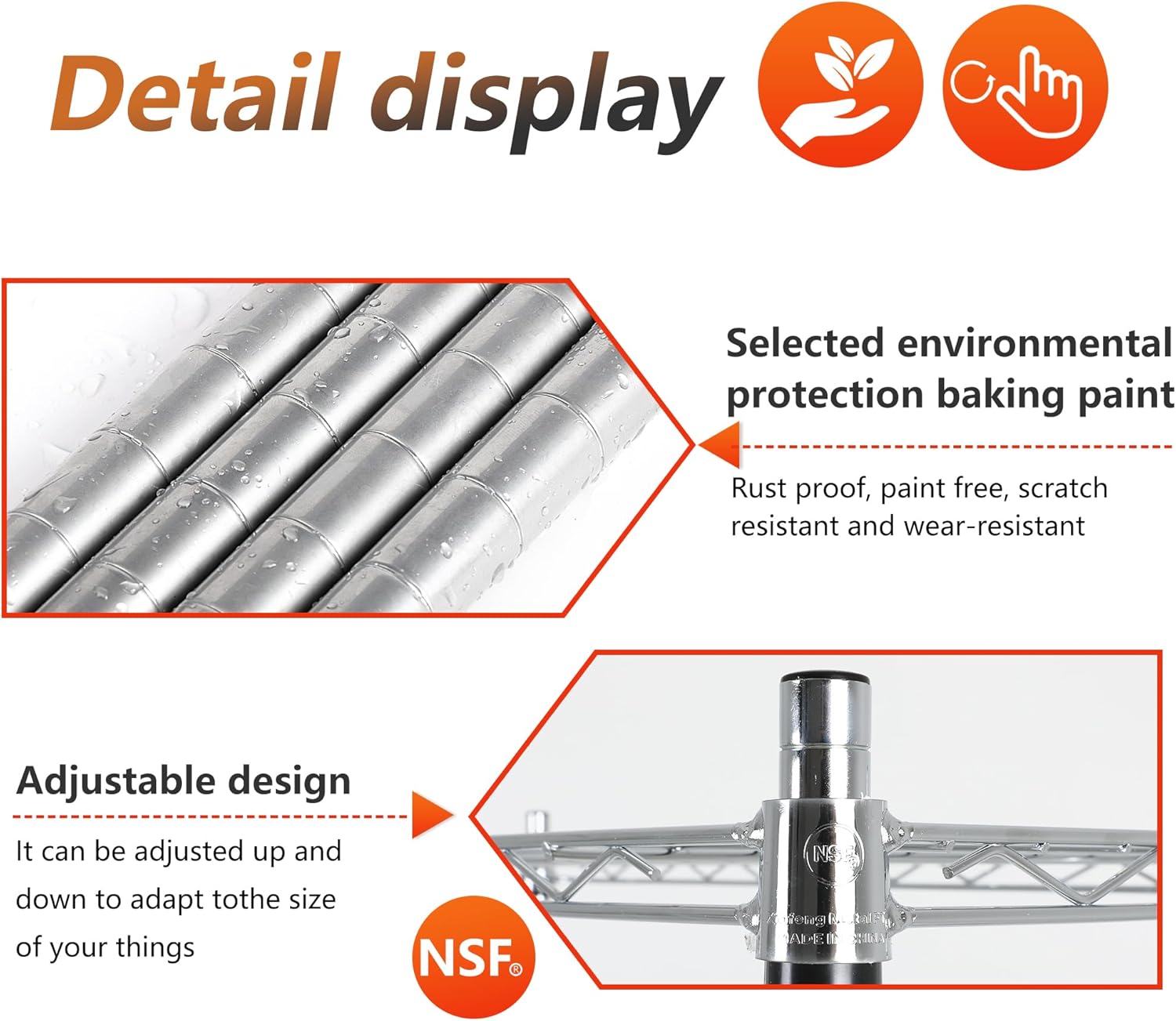- 5.Easy Assembly for Effortless Setup: No more complex instructions or frustrating setups. These storage shelves are designed for easy and quick assembly. Minimal tools and effort required, allowing you to enjoy your new storage rack in no time. Save energy for organizing your belongings, not assembling the wire shelf.