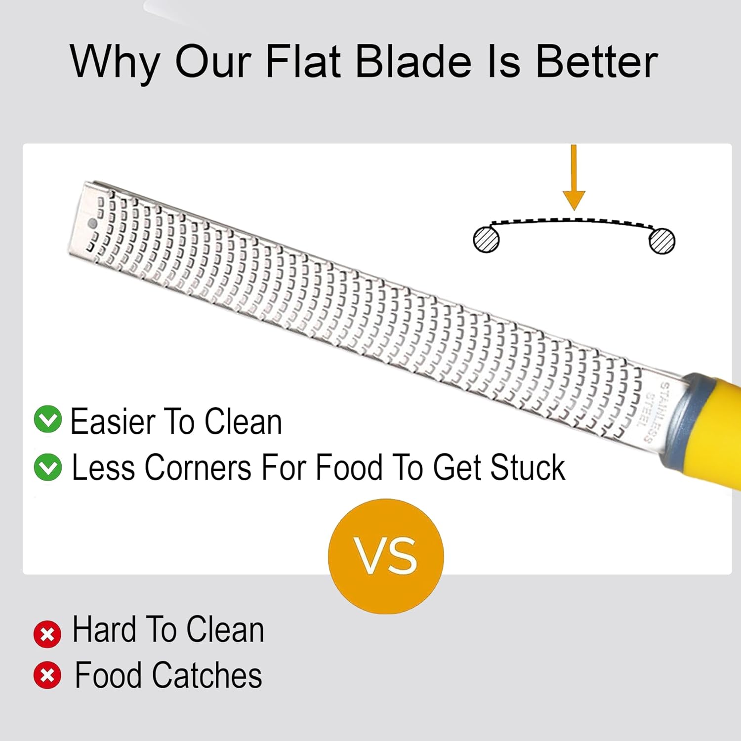 - IT DOES WHAT YOU WANT ๐ - Our zester grater is delicate enough to perfectly zest your lemons yet strong enough to plow through a block of aged parmesan cheese. Trust us - we spent two years fixating on the angle of micro teeth.