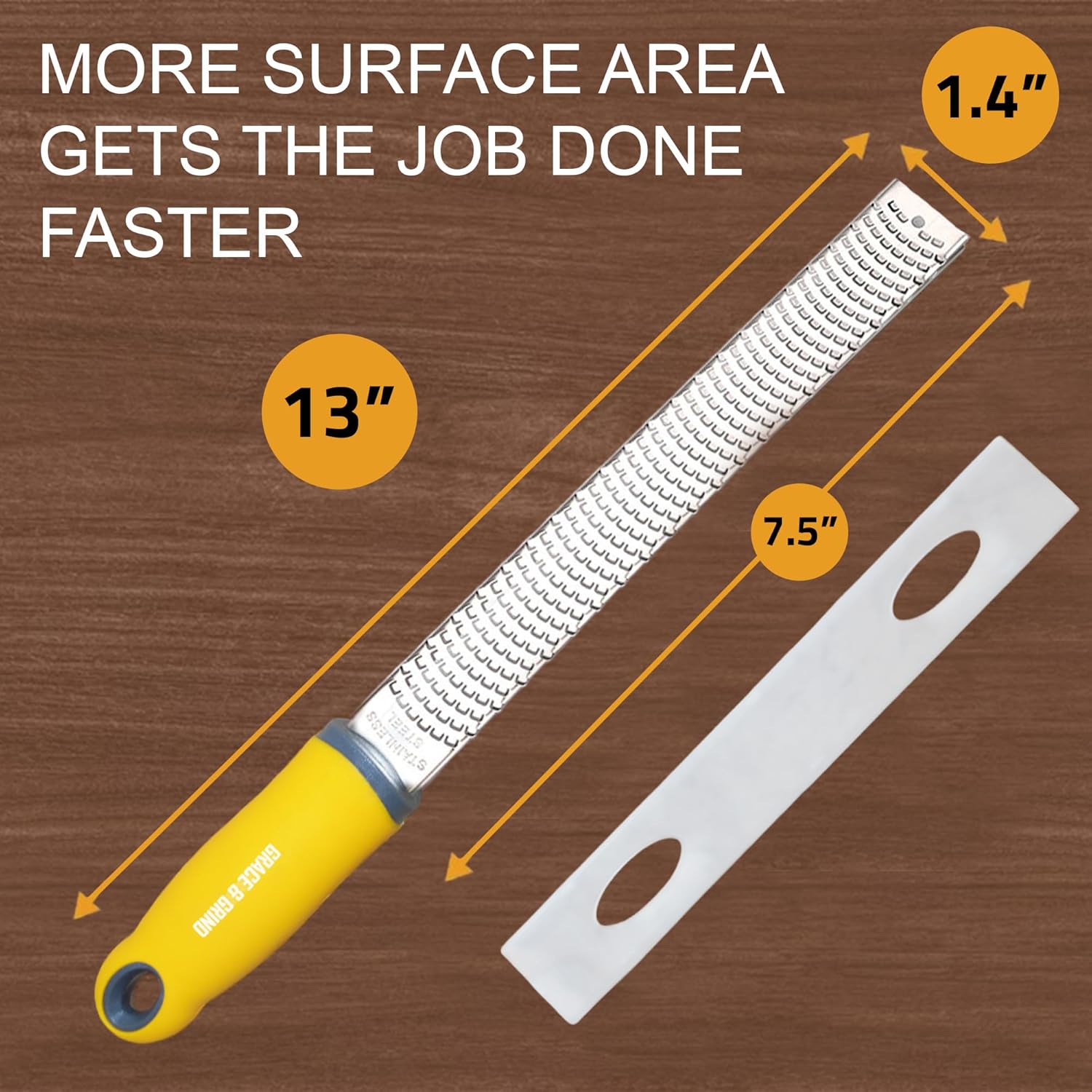 - IT IS BIG ๐ช โ This baby is 13 inches tall - more surface area means much faster zesting & grating. It's as tall as a bowling pin yet it fits in our drawer (but we like to hang ours up like a trophy).