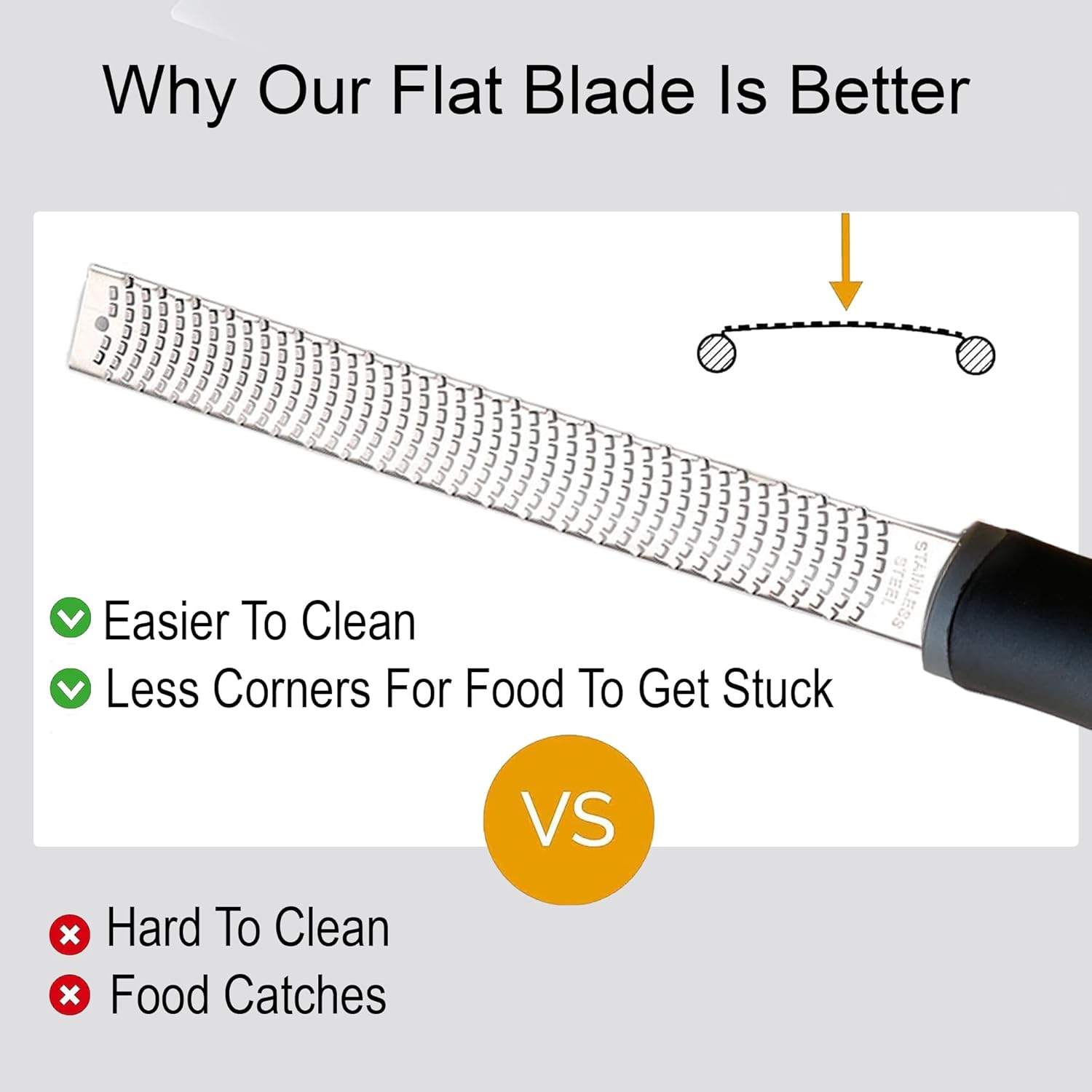 - IT DOES WHAT YOU WANT ๐ - Our zester grater is delicate enough to perfectly zest your lemons yet strong enough to plow through a block of aged parmesan cheese. Trust us - we spent two years fixating on the angle of micro teeth.