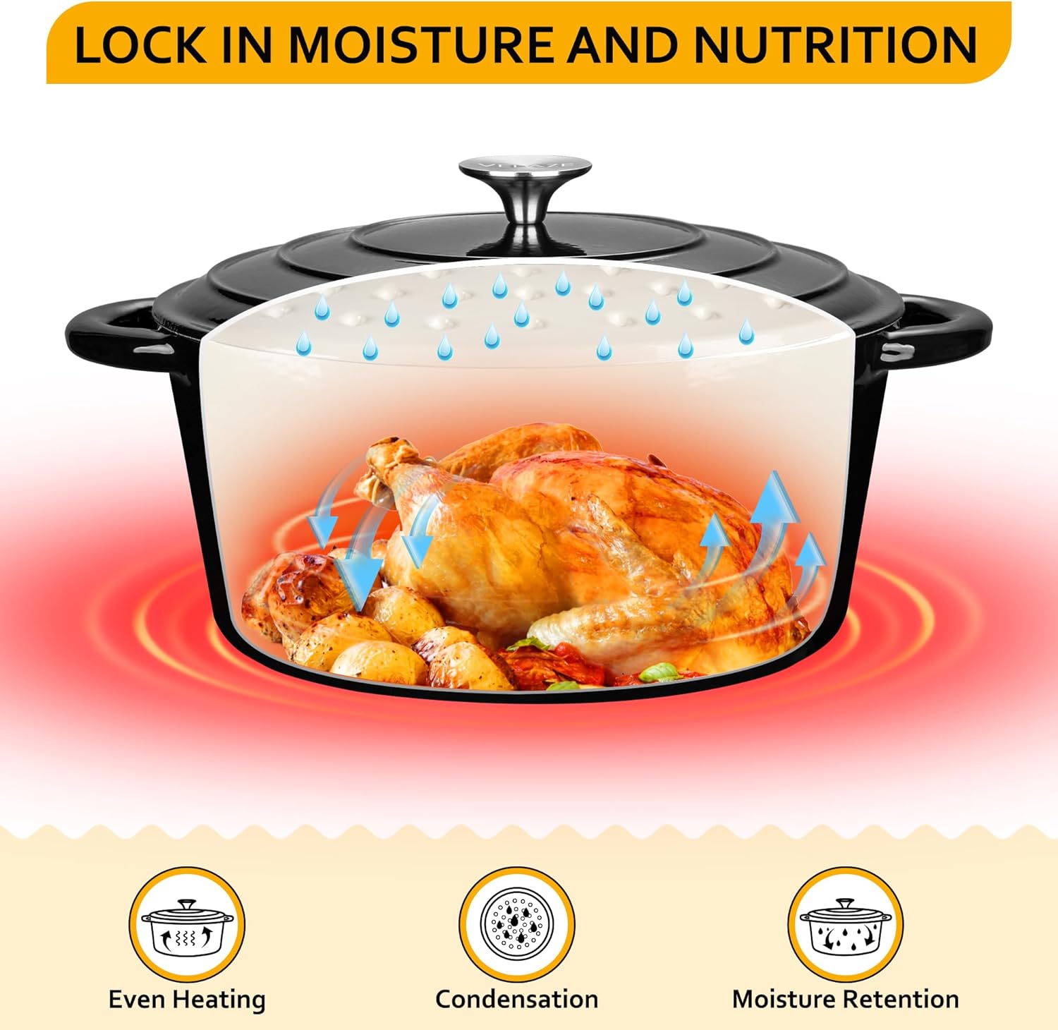 Velaze 7.5 QT Dutch Oven Pot with Lid, Enameled Cast Iron Dutch Oven with Dual Handles for Sourdough Bread Baking, Cooking, Non-stick Enamel Coated Cookware (Black)