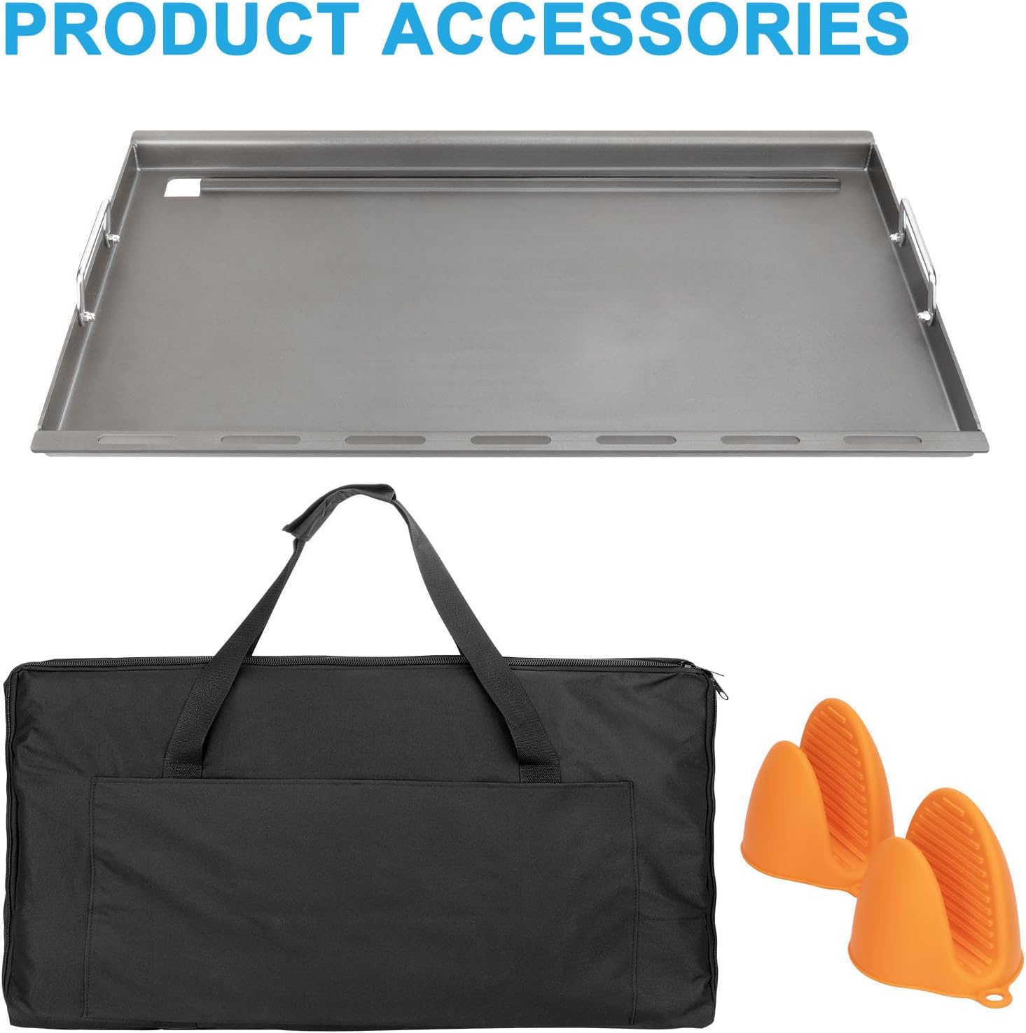 - 【Carry bag & Silicone Gloves】Carry bag made of heavy-duty 600D Oxford fabric that can support weather-resistant, water-resistant and rip-resistant. The storage bag provides protection for your flat top grill, when it is not in use keep your full-size griddle looking great and easy to carry; Silicone gloves it allows you to no need to wait for Weber genesis flat top griddle to cool down when replacing, making it quicker and easy to replace.