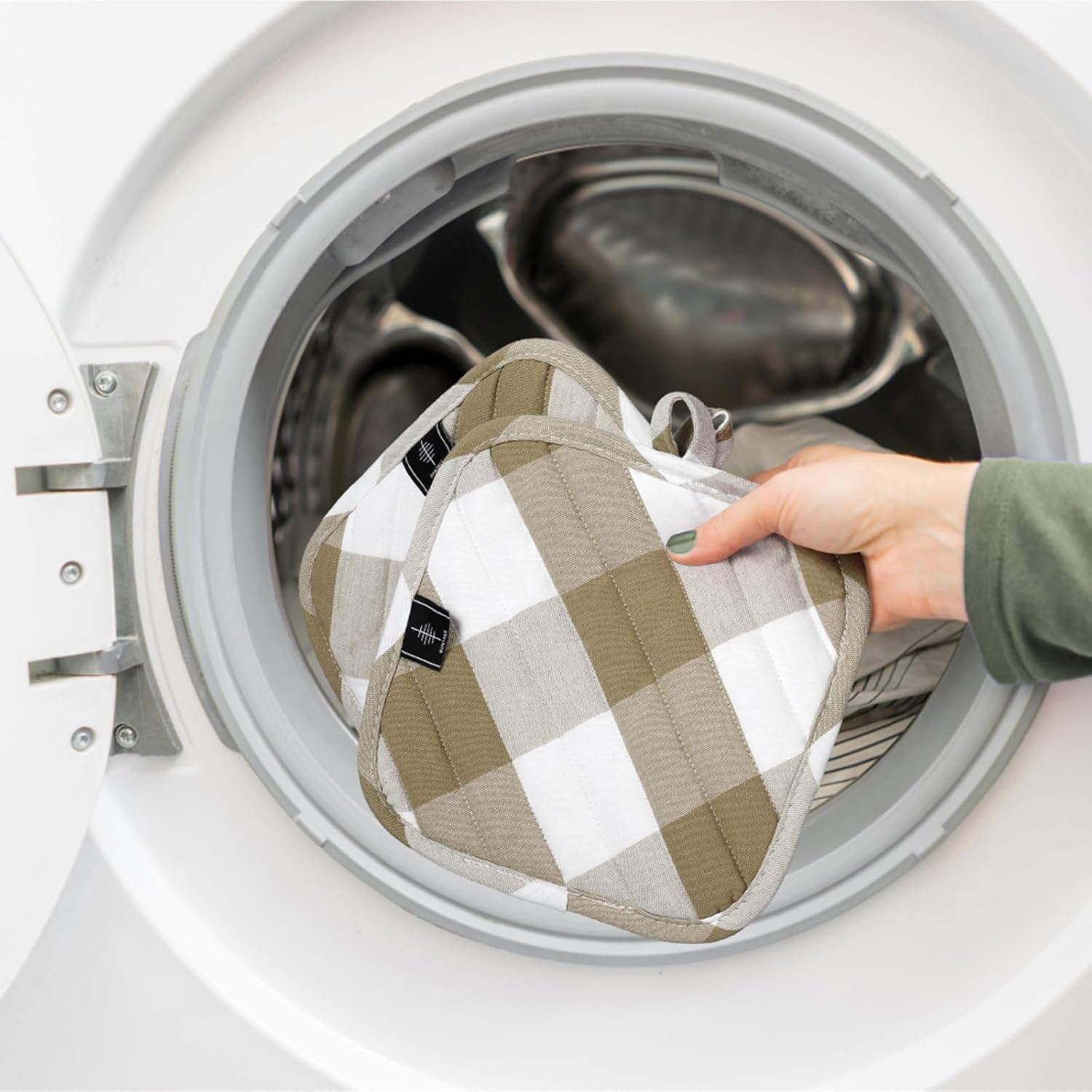 - [Kitchen Decor] These pot holders come in a variety of stylish and classical plaid designs, adding a touch of elegance to your kitchen decor. The loop on each pot holder allows for easy hanging storage, keeping them within reach whenever you need them.