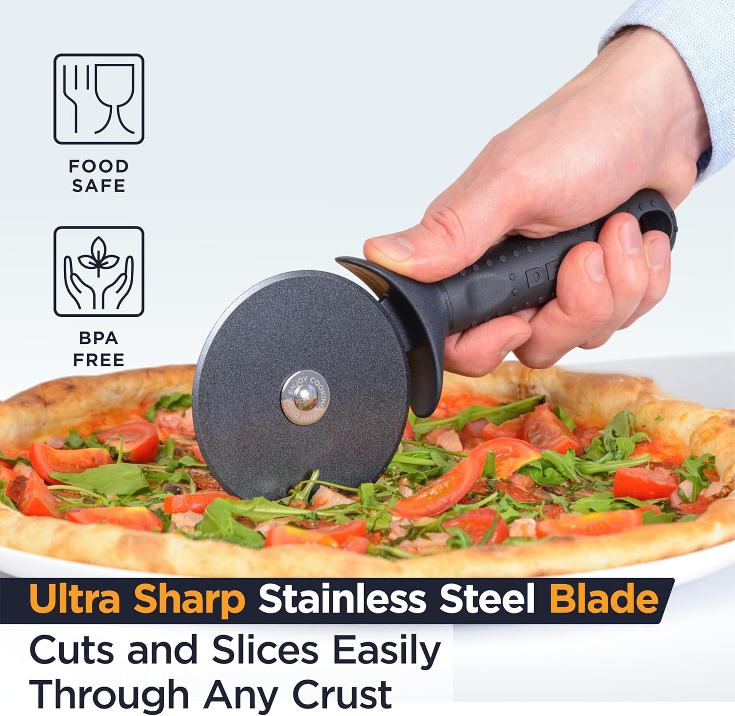 Deiss Lux Heavy Duty Pizza Cutter With Wheel Slicer- Stainless Steel Sharp Smooth Pizza Cutter Wheel With Easy Grip Non-Slip Handle, Dishwasher Safe (BLACK)